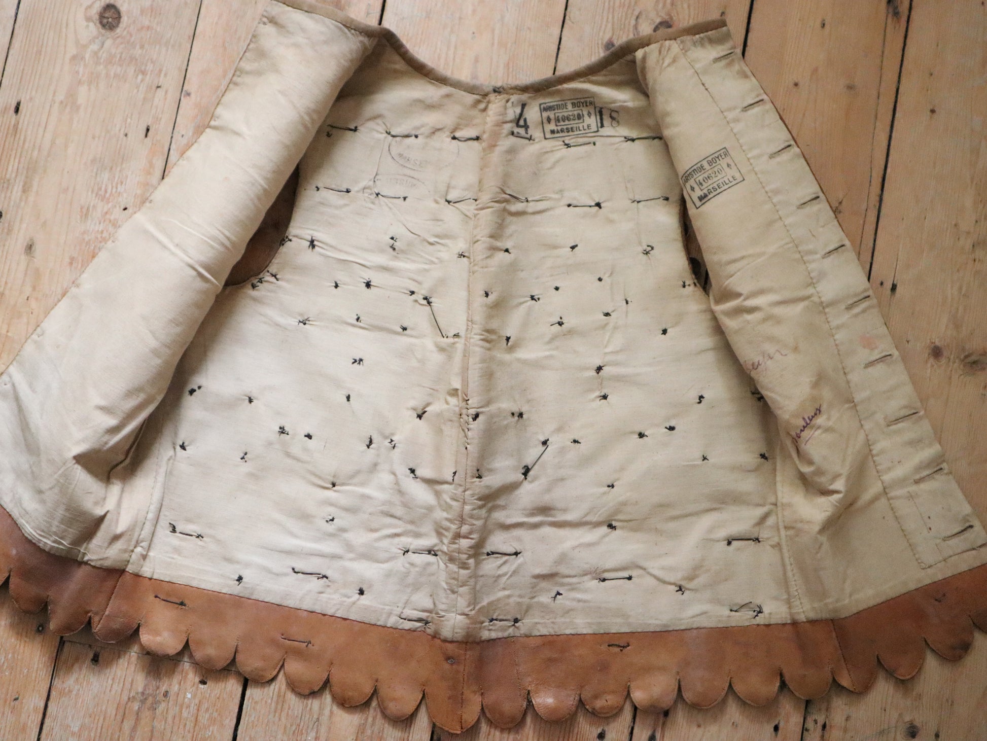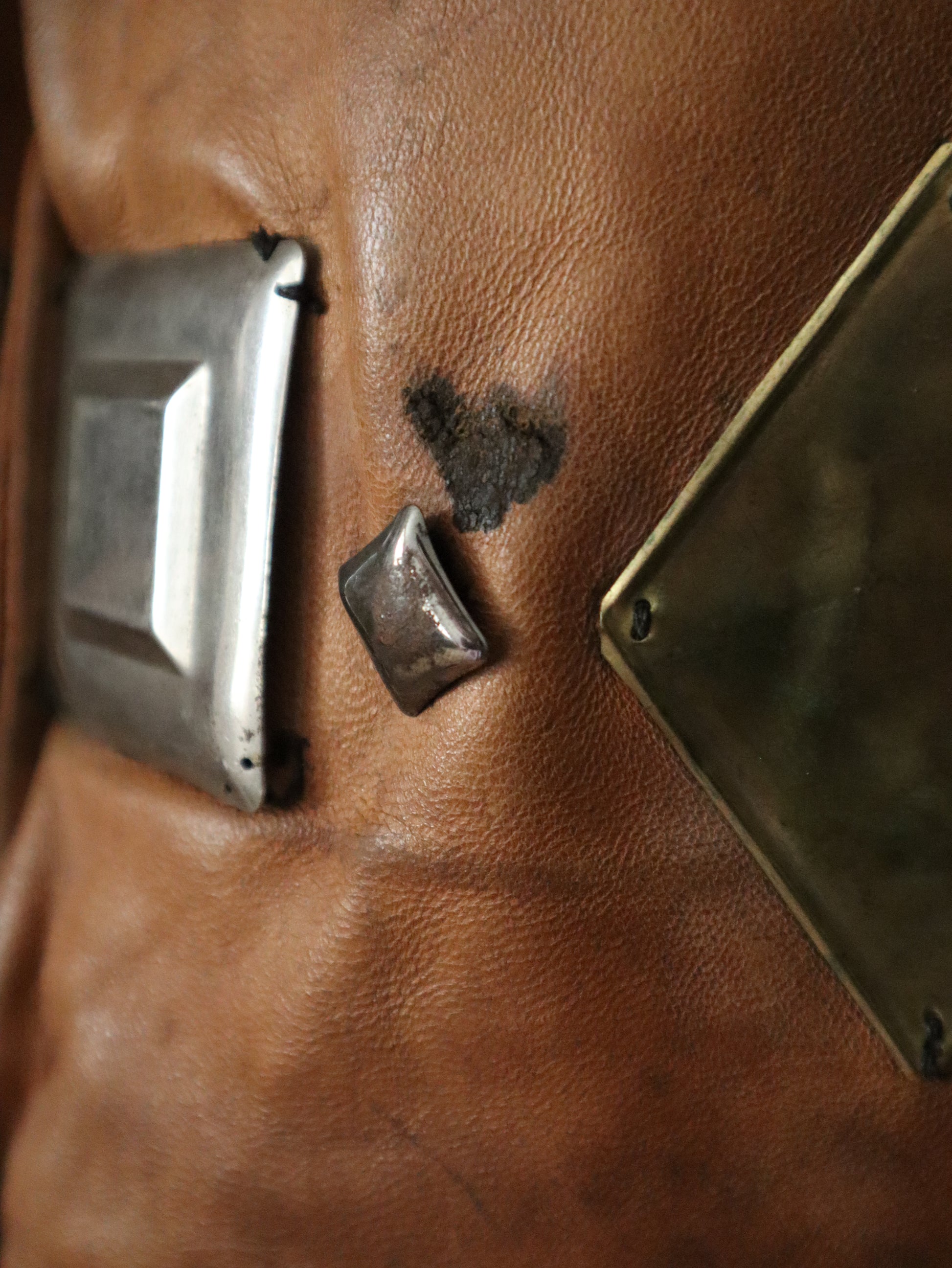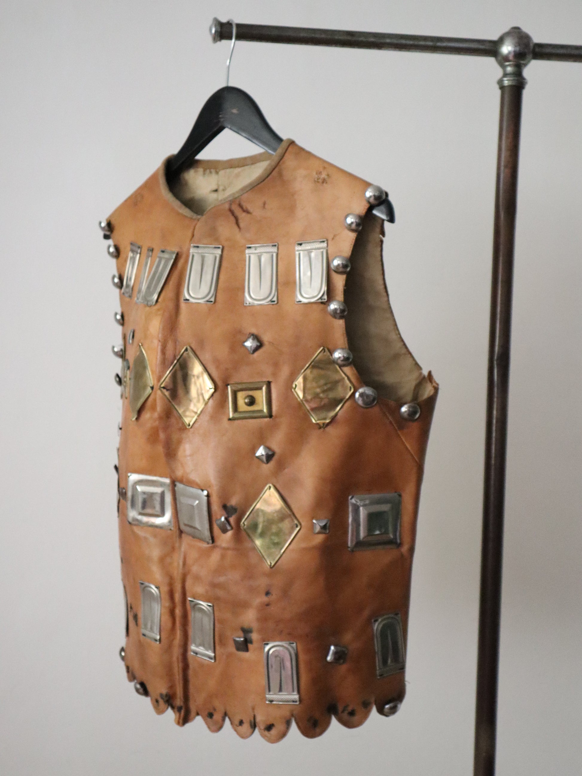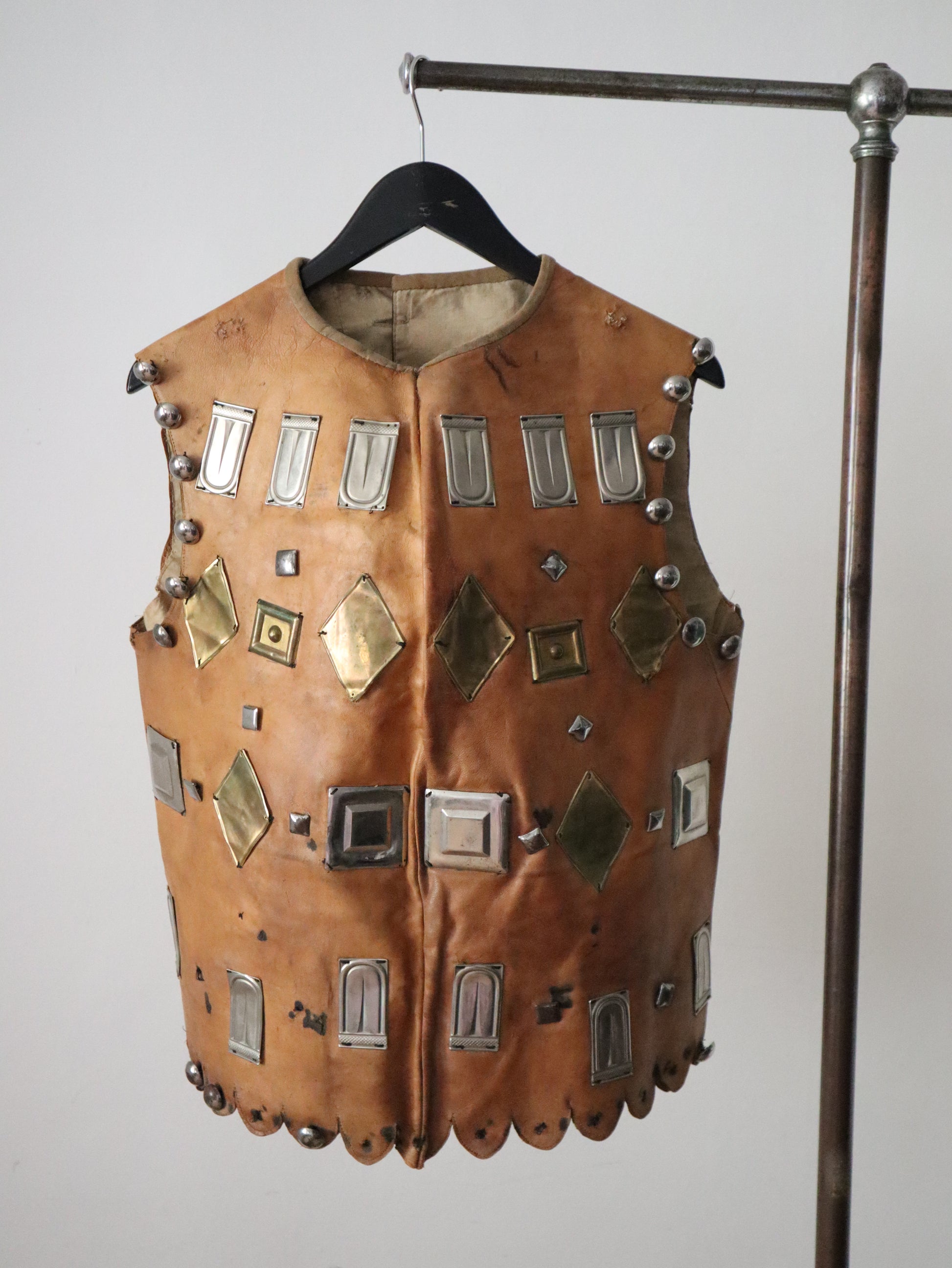 1910s 20s French Opera Costume Leather Gilet Tunic Metal Plates