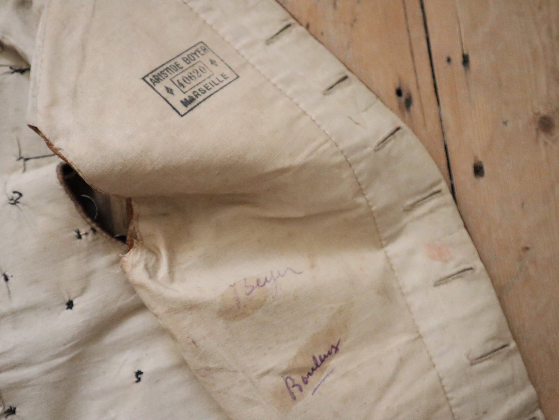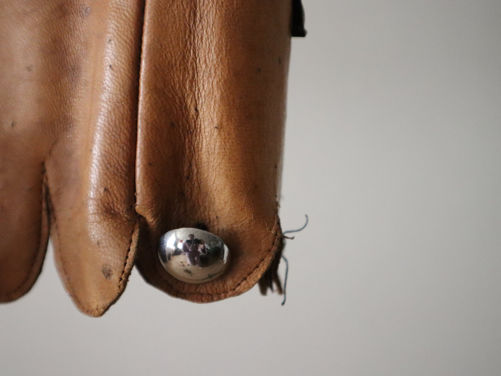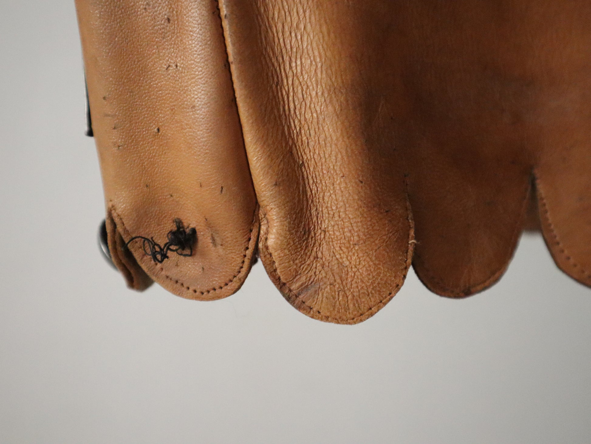 Condition: this has many marks and scuffs to the leather. Some of the stitching has come undone at the scalloped hem. There are also split stitching at the underarm. There are missing studs and some of the metal plates needs stitching back into place. I have four spare round button studs and one small square one which I’ll include in the parcel.