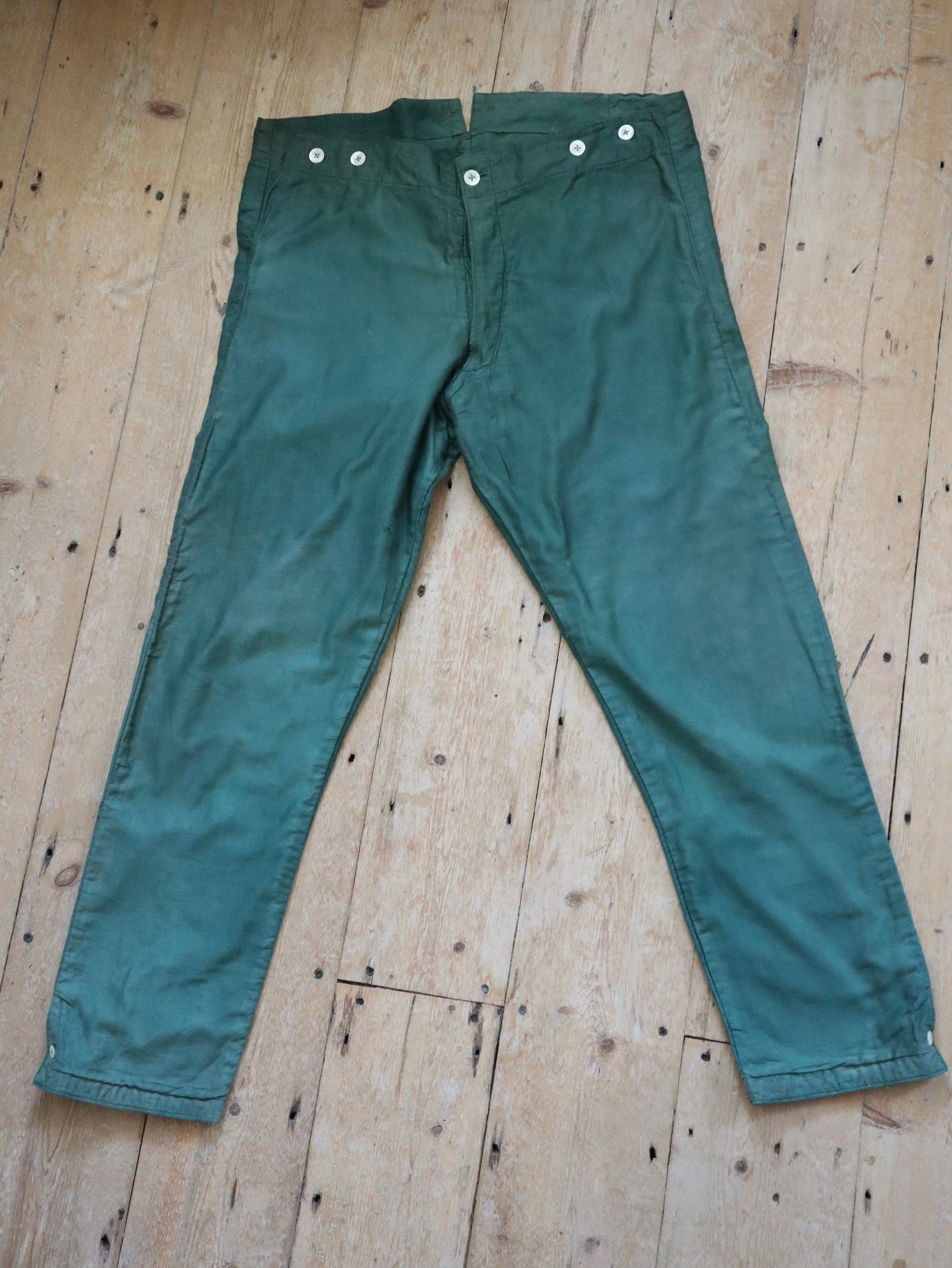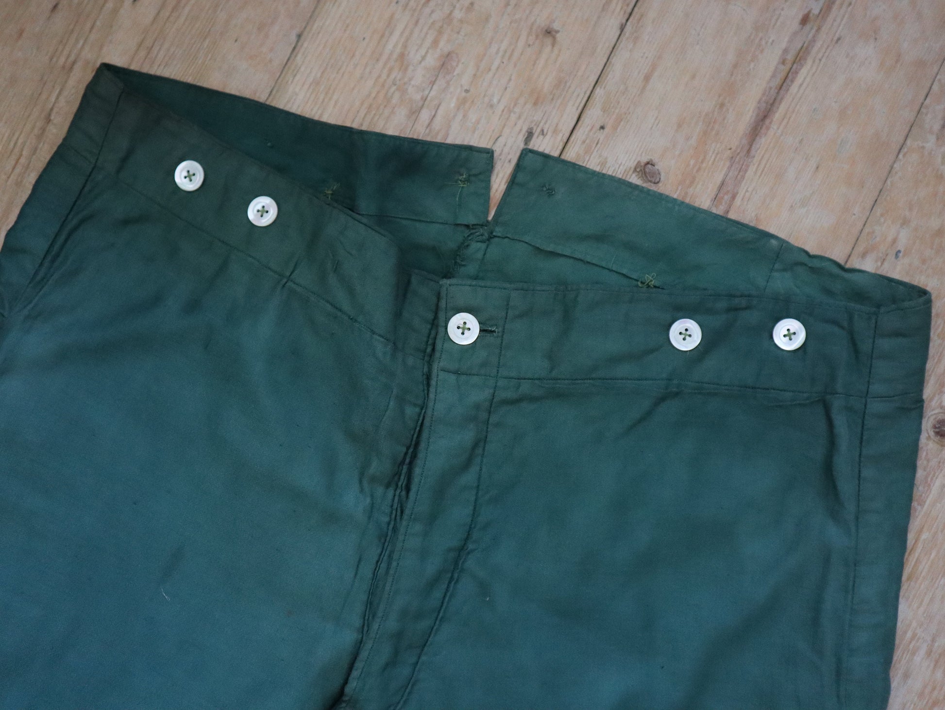 1910s French Green Cotton Trousers Pants Theatre Costume