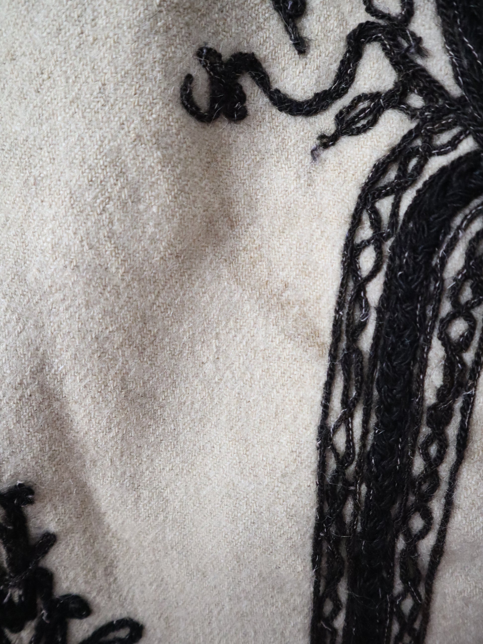 Decorated with applied black soutache and red wool detailing in distinctive scrolling and circular motifs across the front and back.