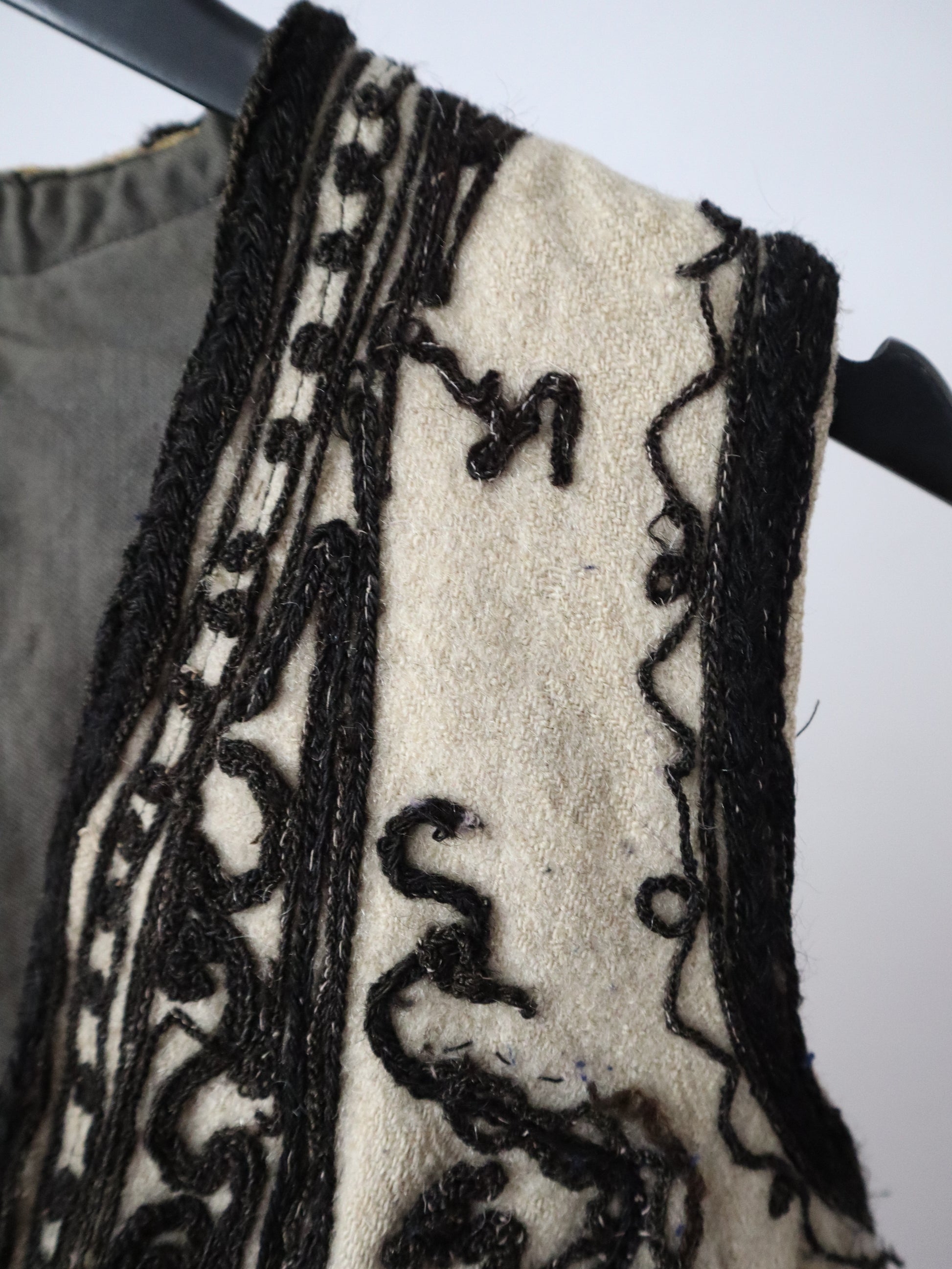1920s 1930s Transylvanian wool folk waistcoat with black and red soutache decoration