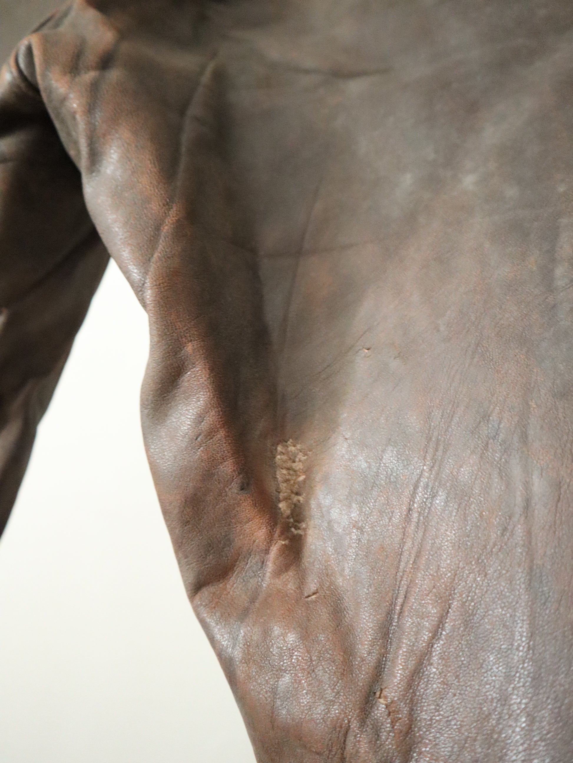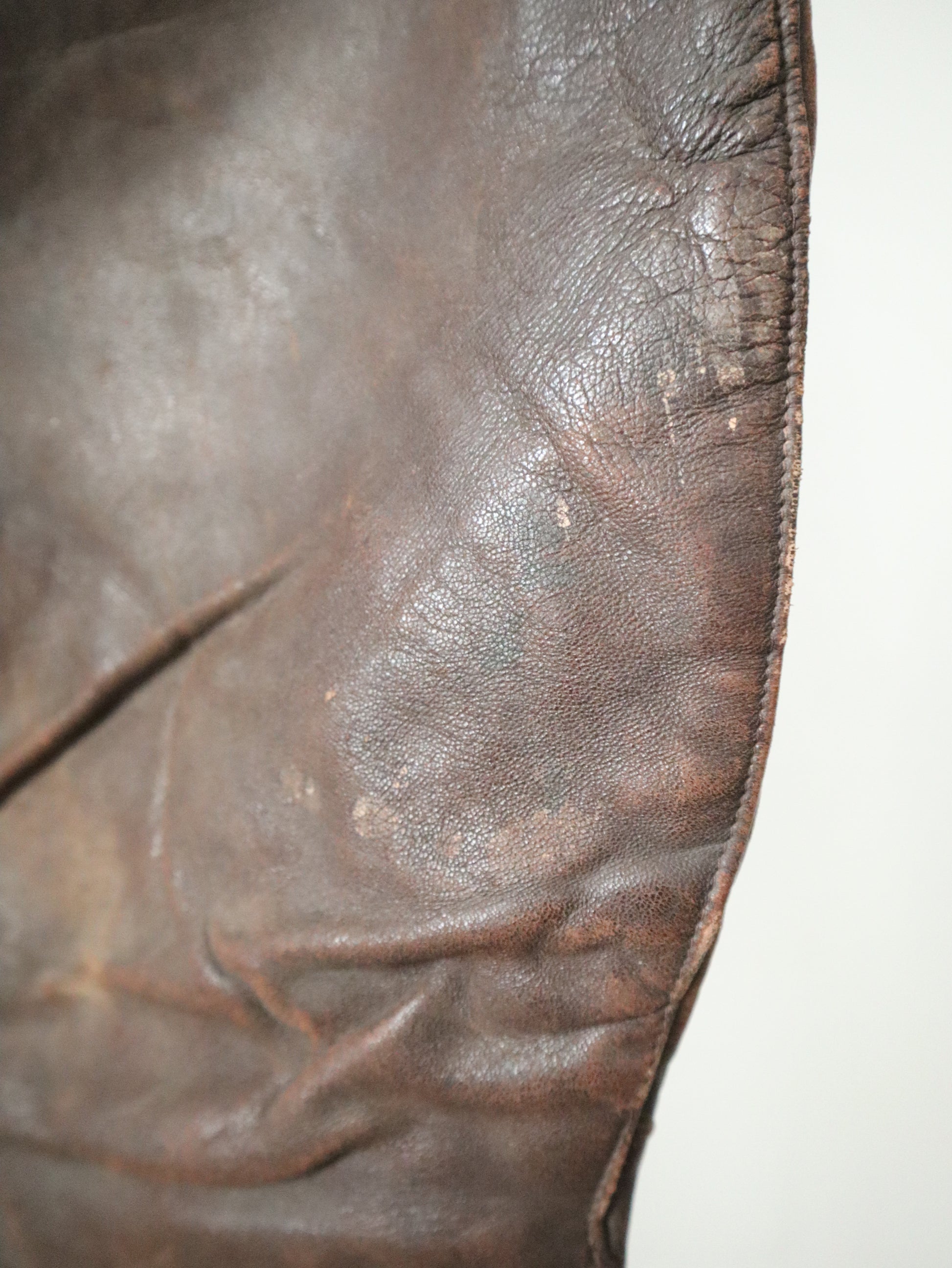 Wonderful overall condition for their age. The leather is soft and richly patinated, with only minor scuffs and wear. There is a missing button at the back and two missing at the waist. All visible in the photos.