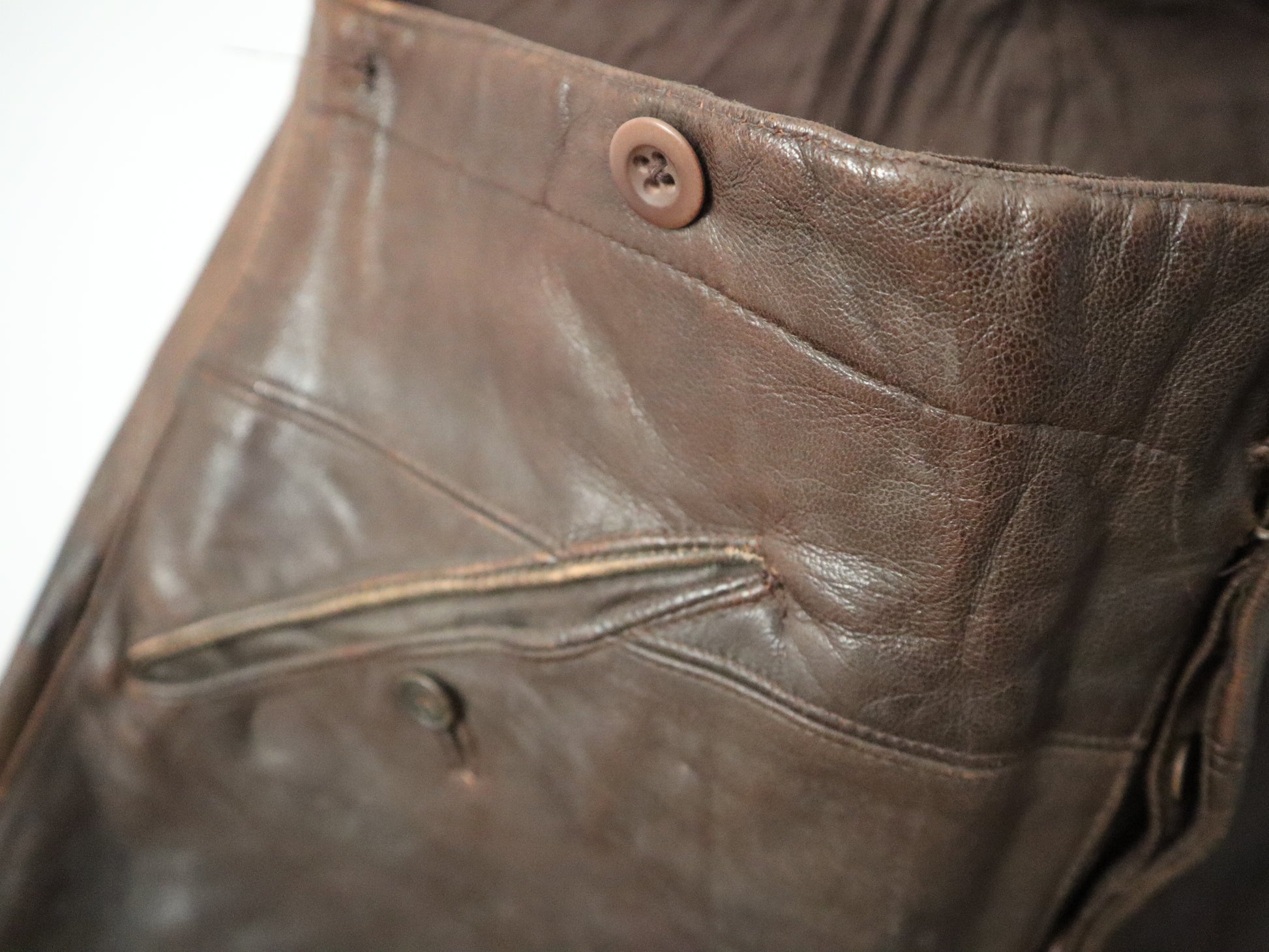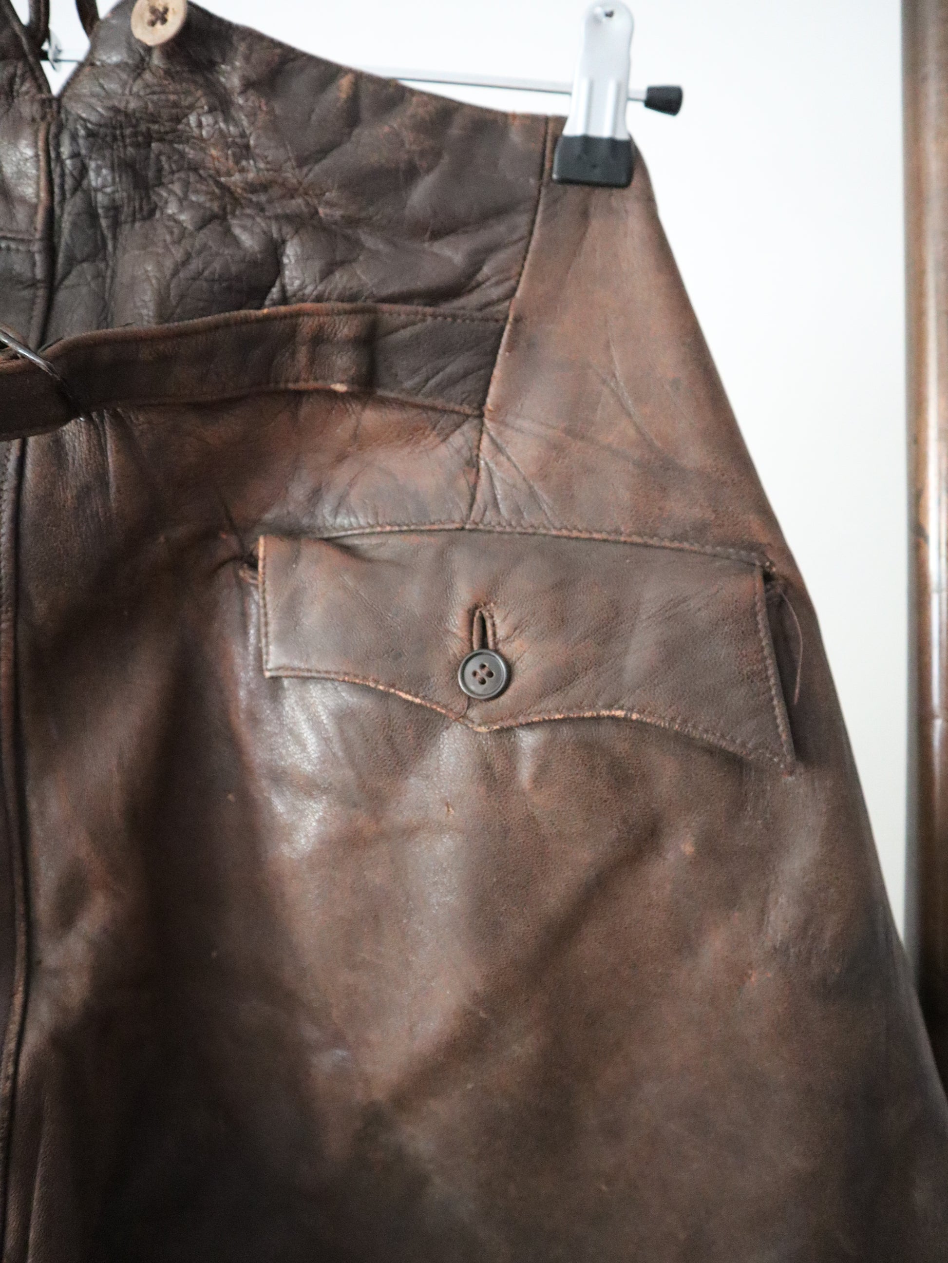 1920s - 30s French Brown Leather Breeches Pilot Trousers Pants High Waist Button Calves