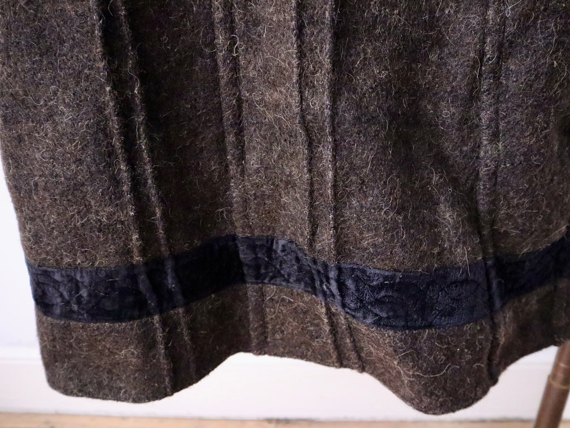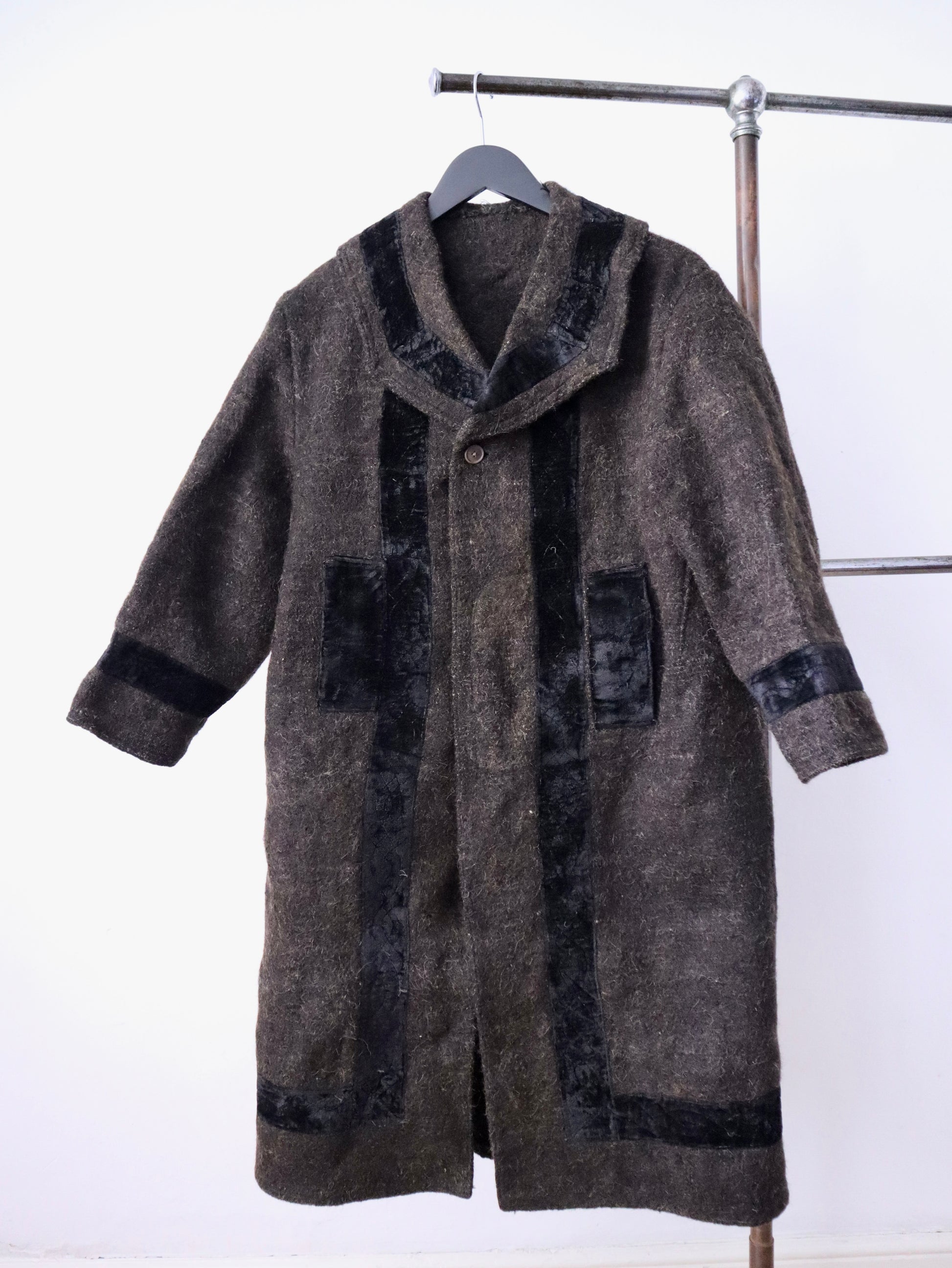 1920s–30s Transylvanian Folk Coat | Brown Wool with Black Velvet Trim