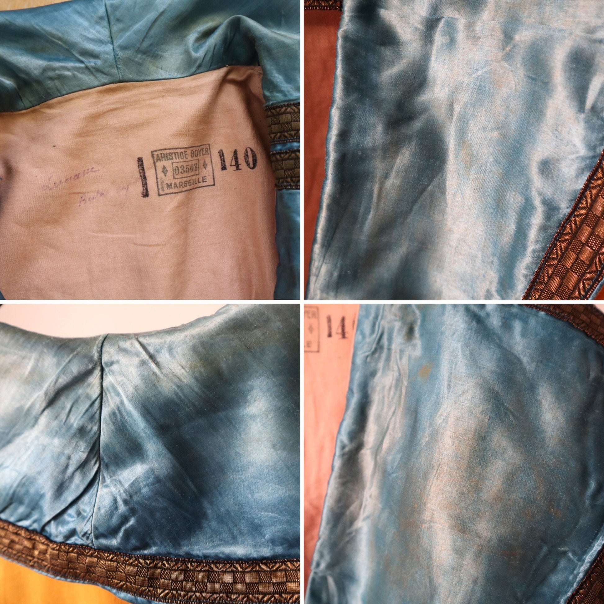 1920s French Theatre Opera Costume Jacket Oriental Style Wide Sleeves Gold Metal Ribbon Trim Yellow Blue