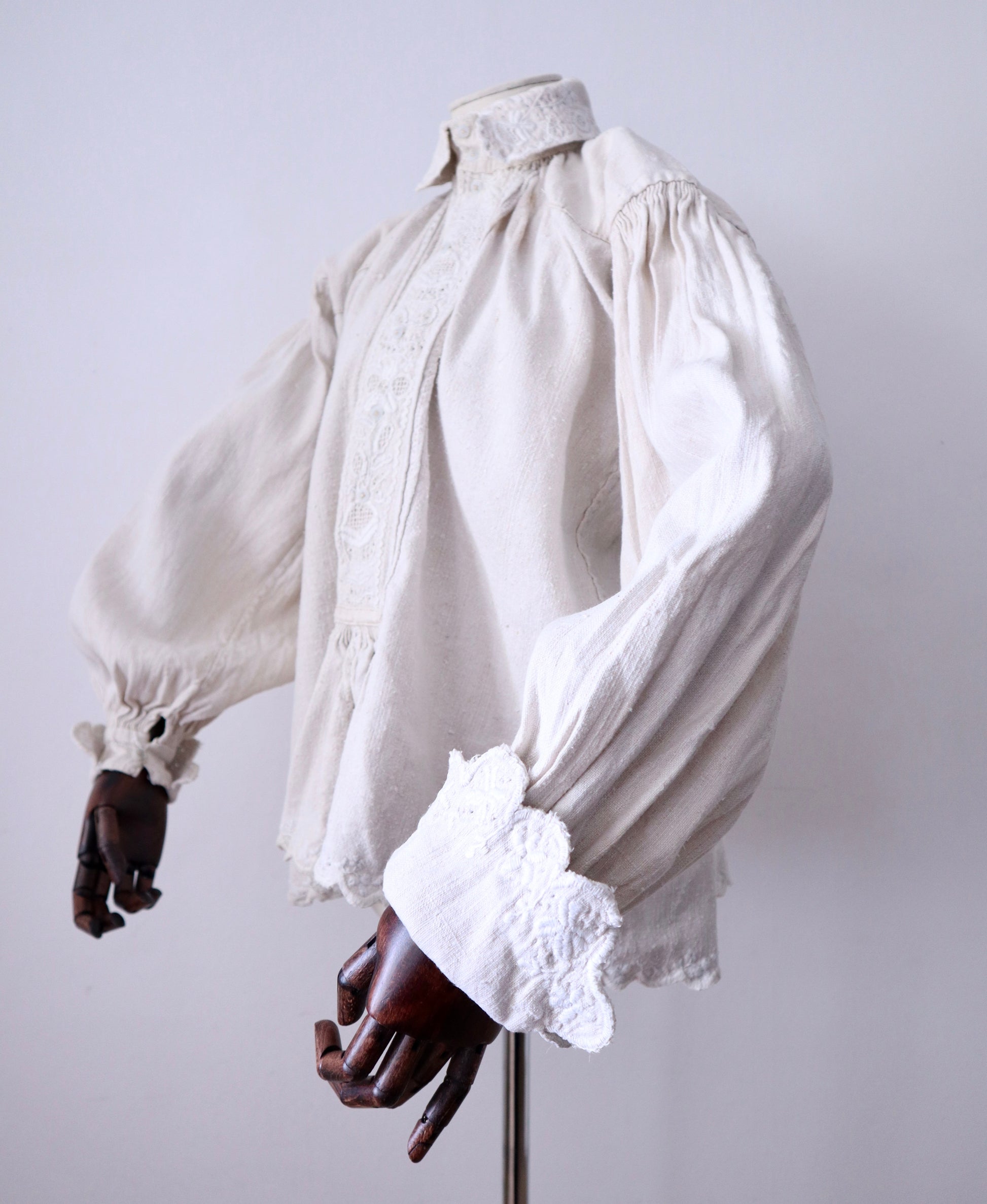 1930s - 1940s Transylvanian linen shirt with embroidery and cutwork