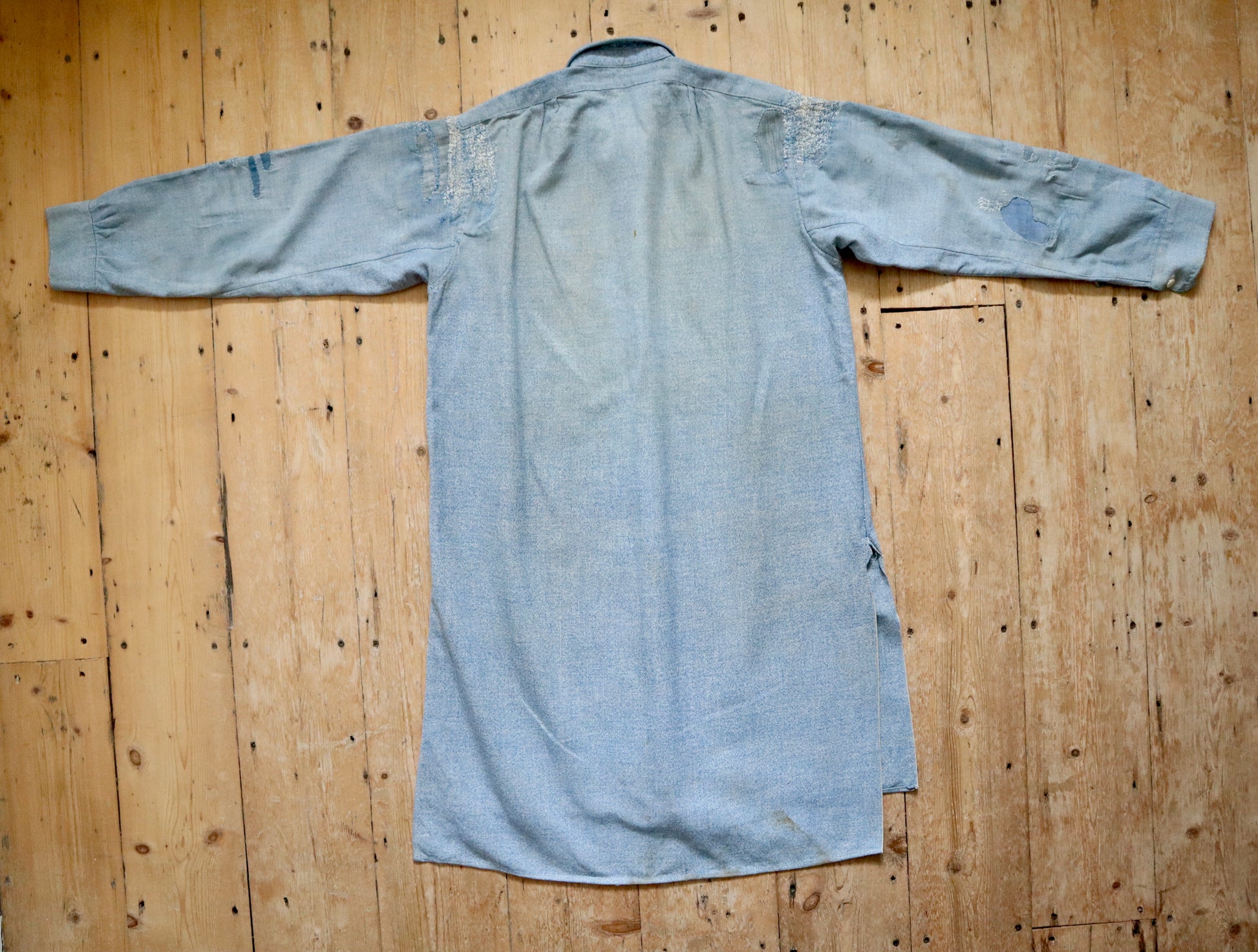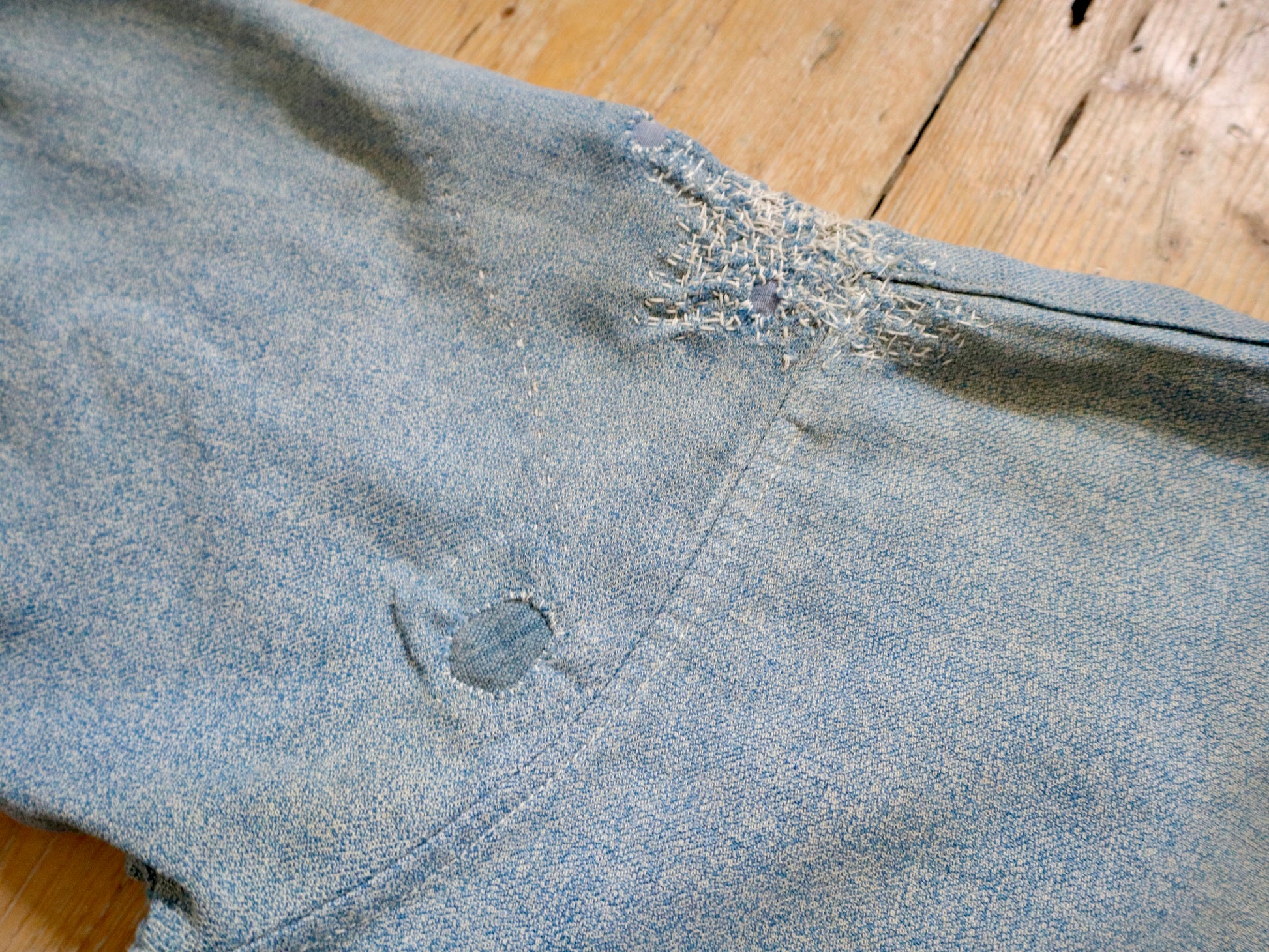 1930s - 40s French Blue Speckled Shirt Workwear Chore Darned Patched Repaired