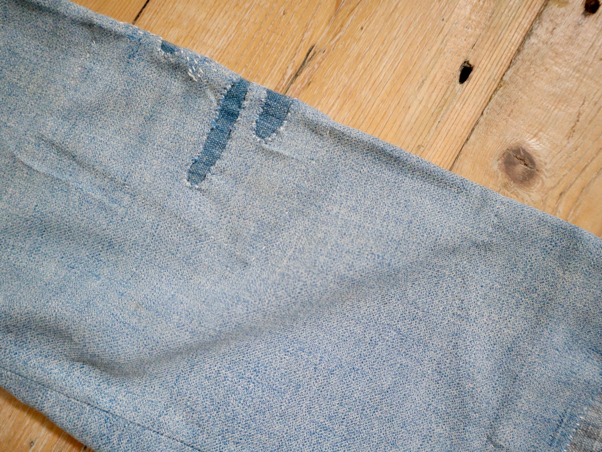 Condition: freshly laundered. There are a few small stains here and there. Many darns and patch repairs.