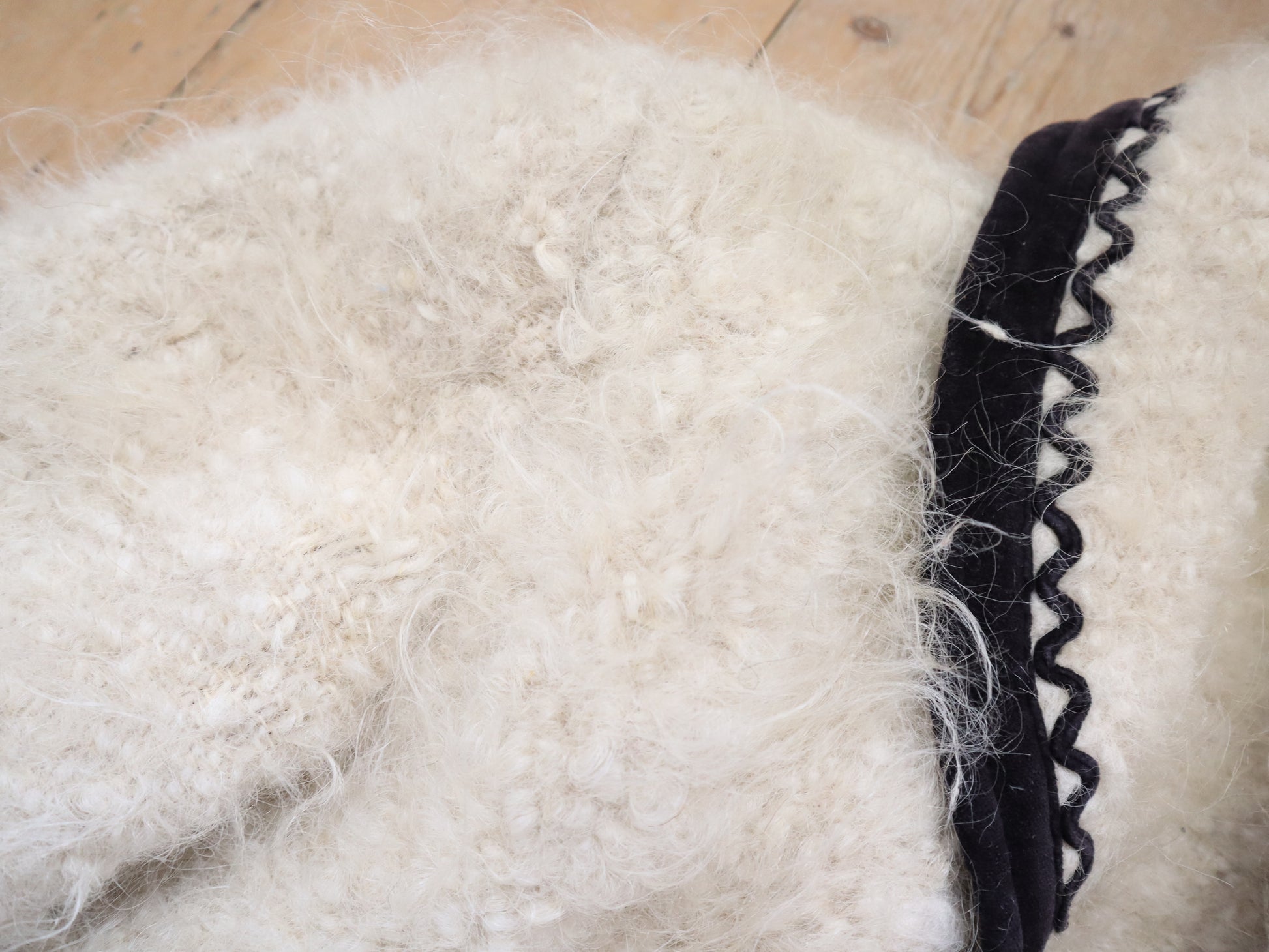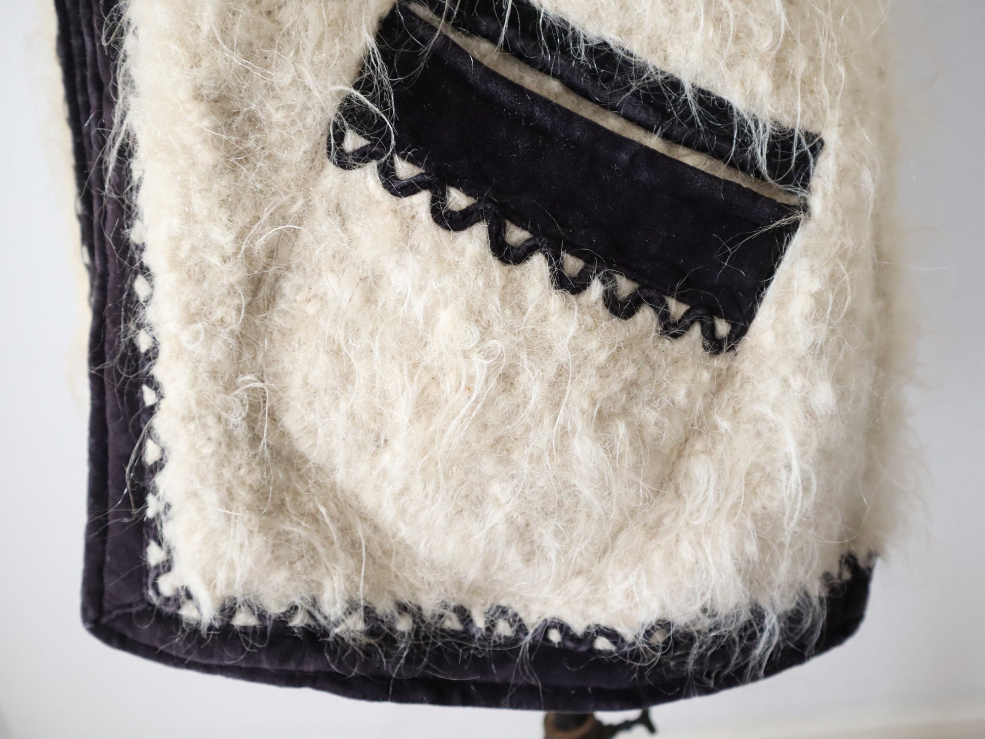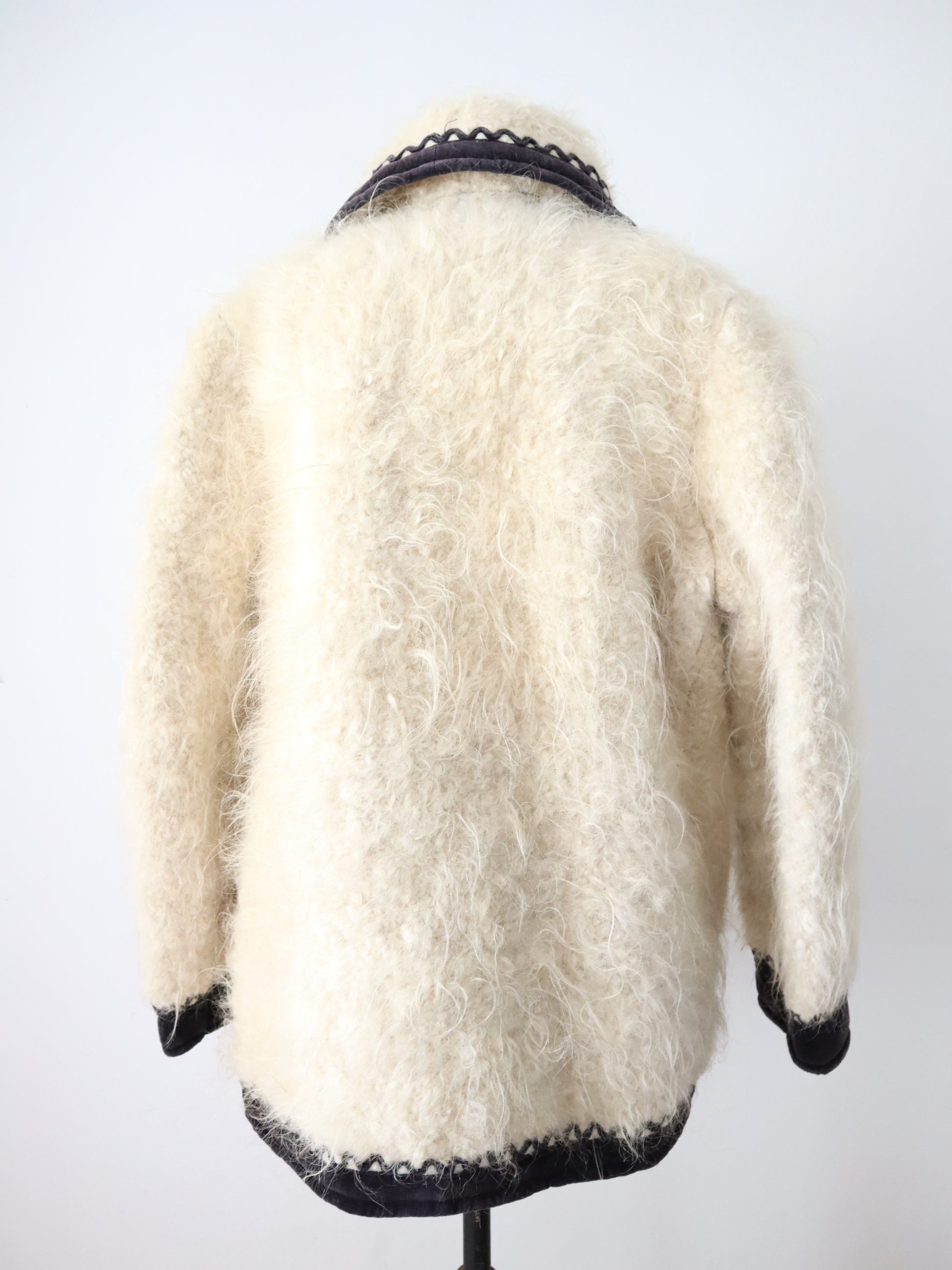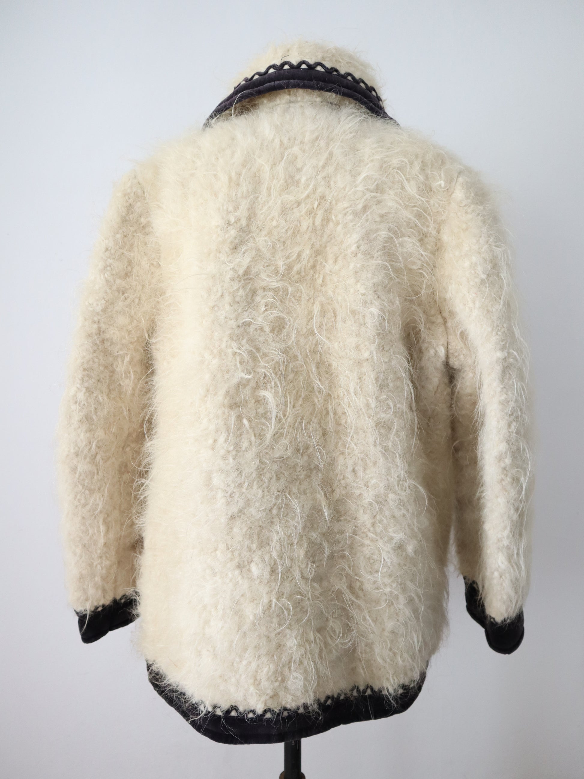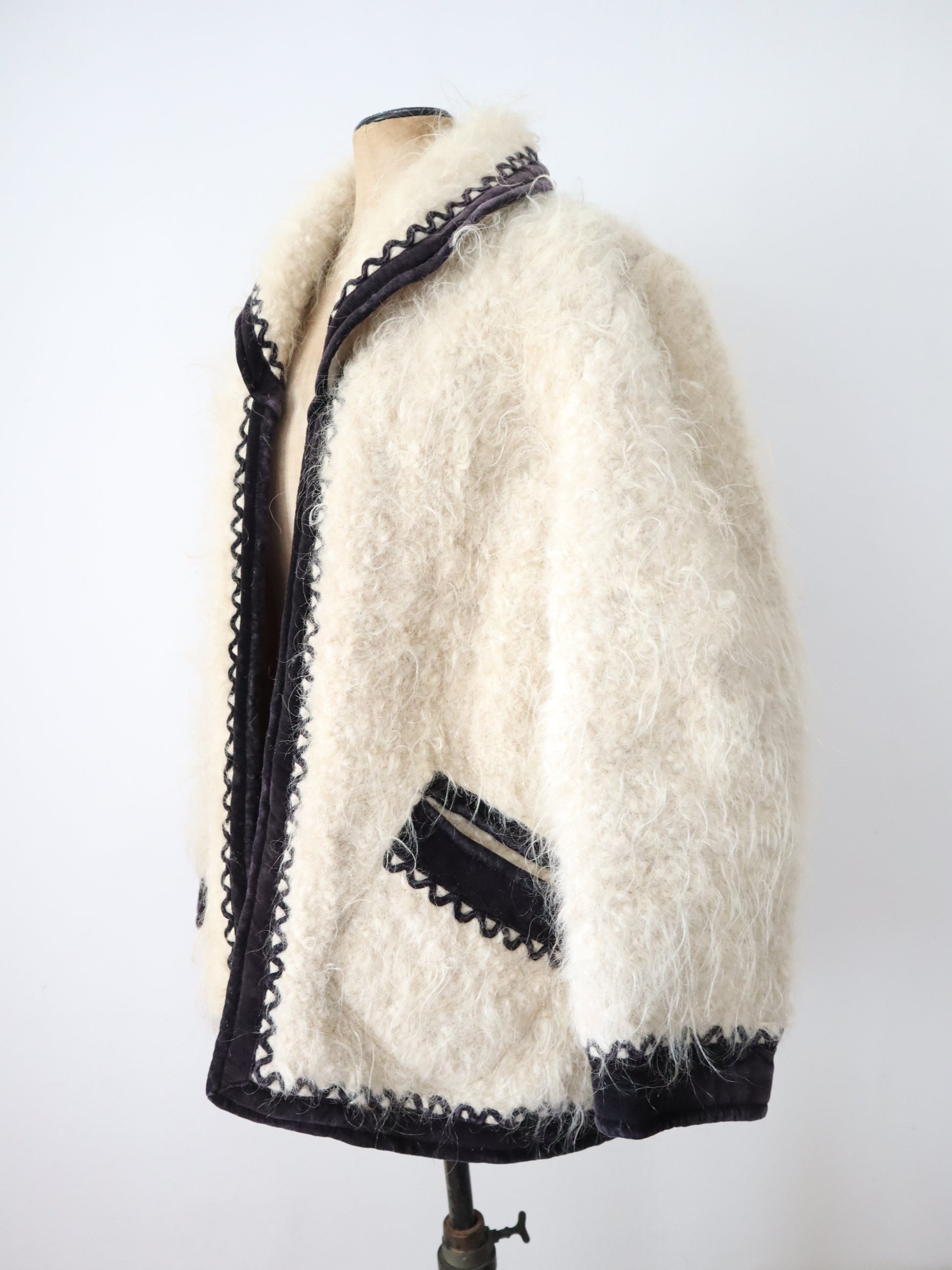 1940s Transylvanian Cream Curly Sheep’s Wool Folk Coat Jacket Velvet Trim Traditional Clothing