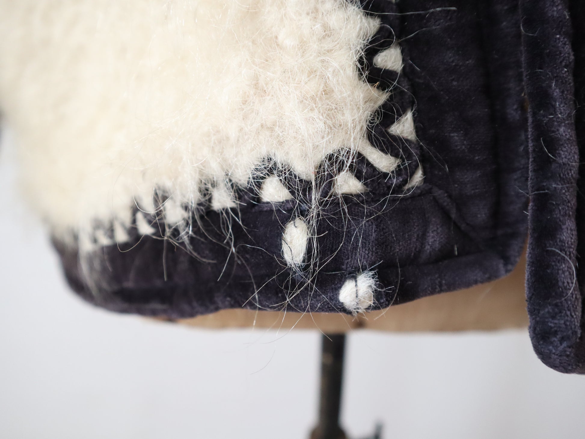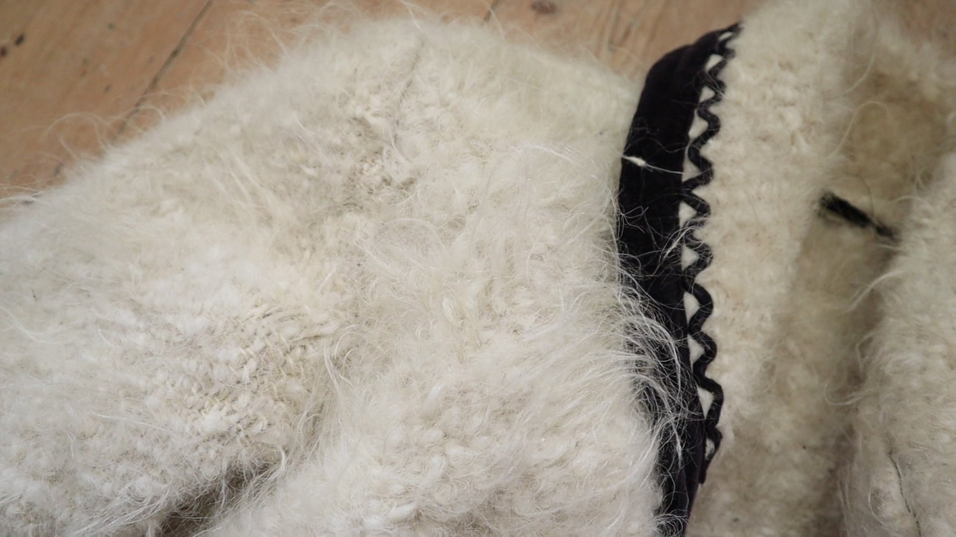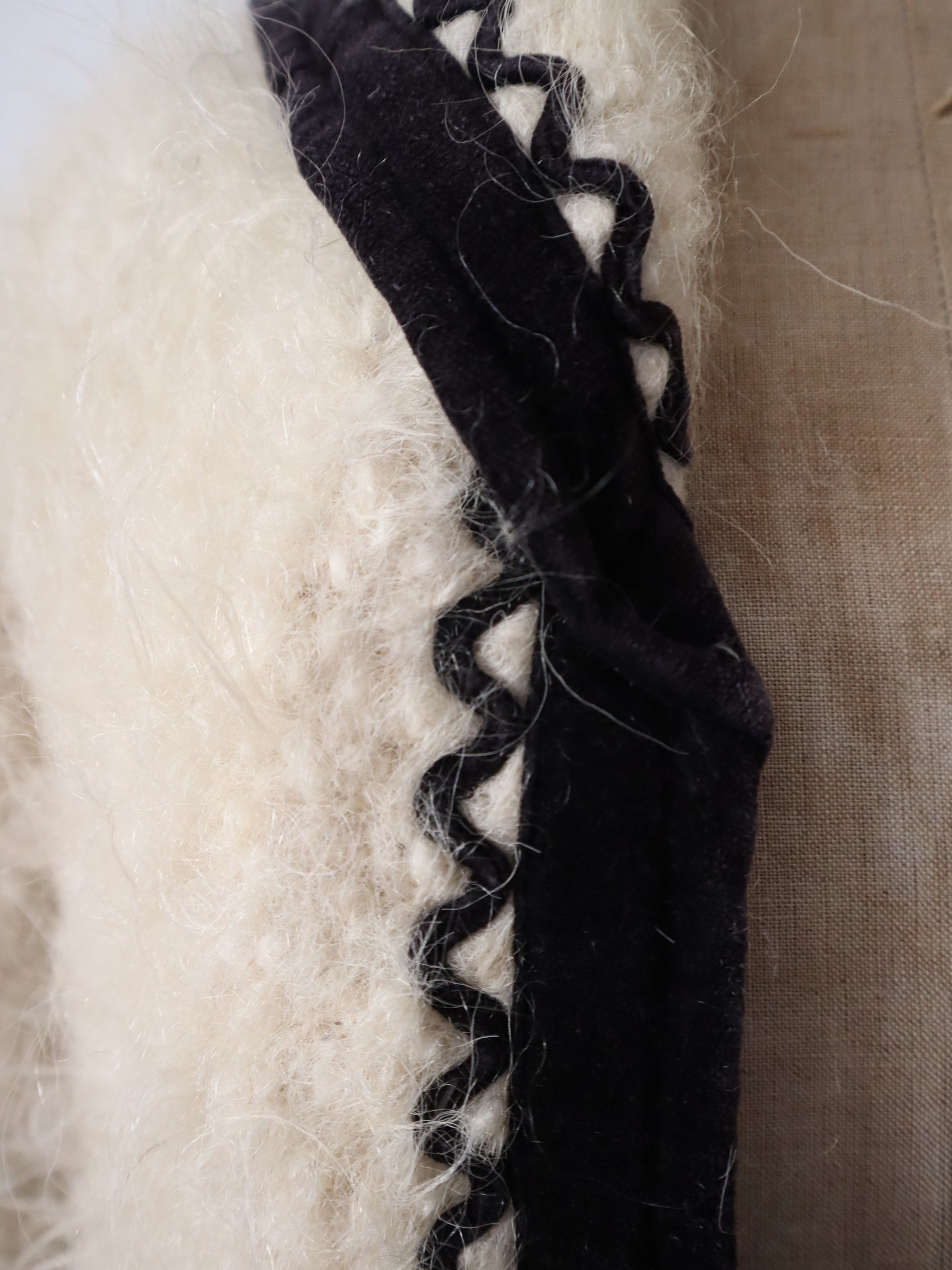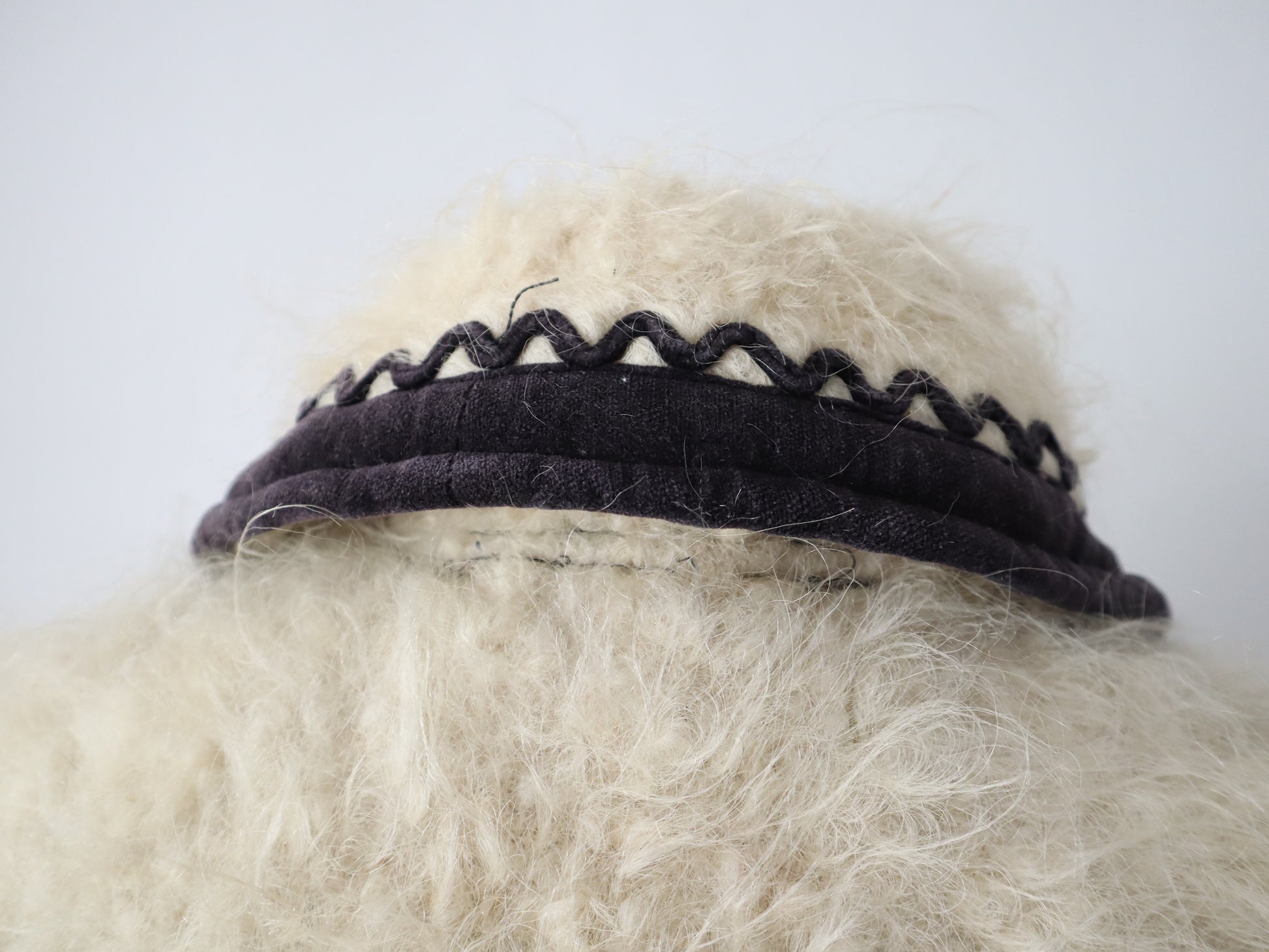 1940s Transylvanian Cream Curly Sheep’s Wool Folk Coat Jacket Velvet Trim Traditional Clothing