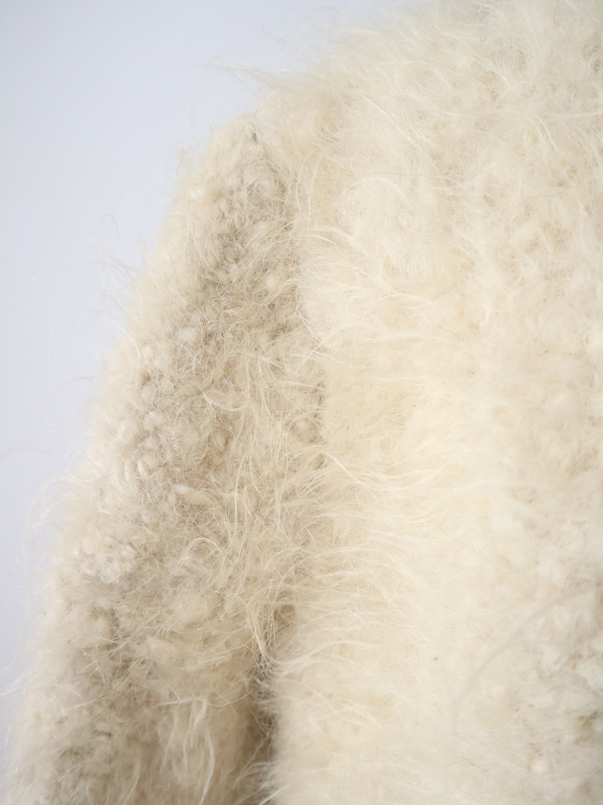 Measures: 22” underarm to underarm, 17 1/2” shoulders, 25” sleeves, 29” long from neck to hem.