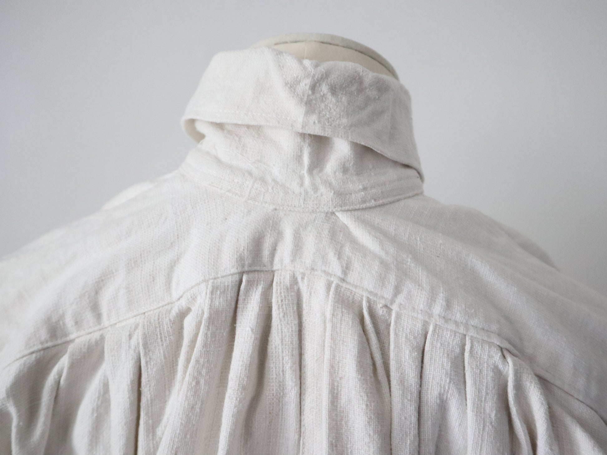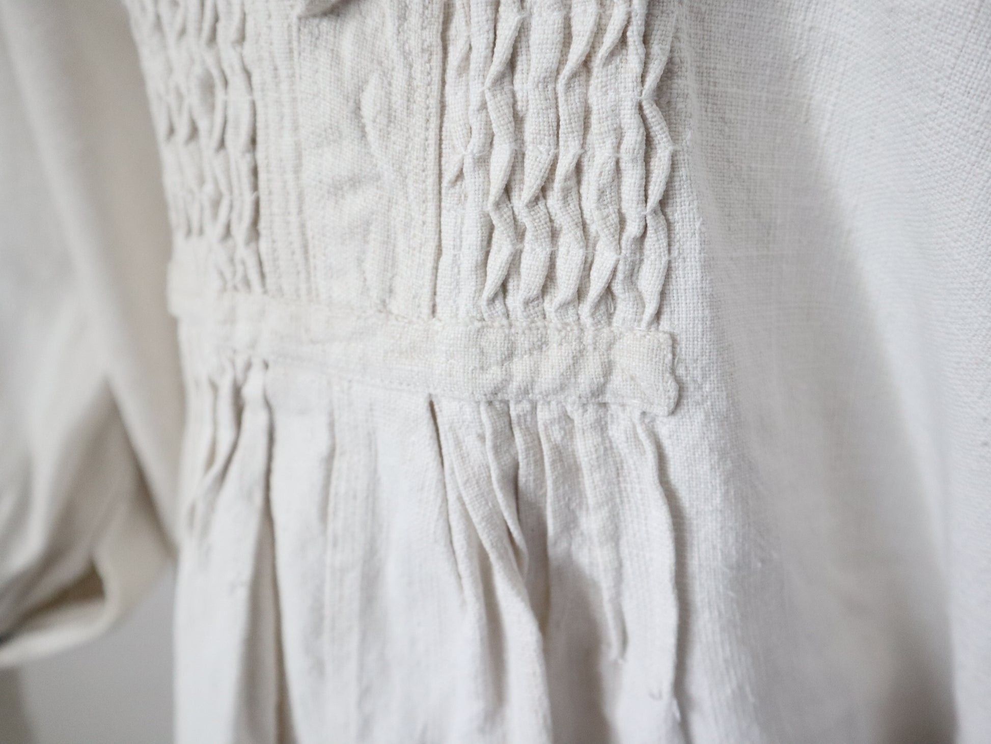 1940s Transylvanian homespun linen folk blouse mother of pearl buttons pleated front traditional menswear