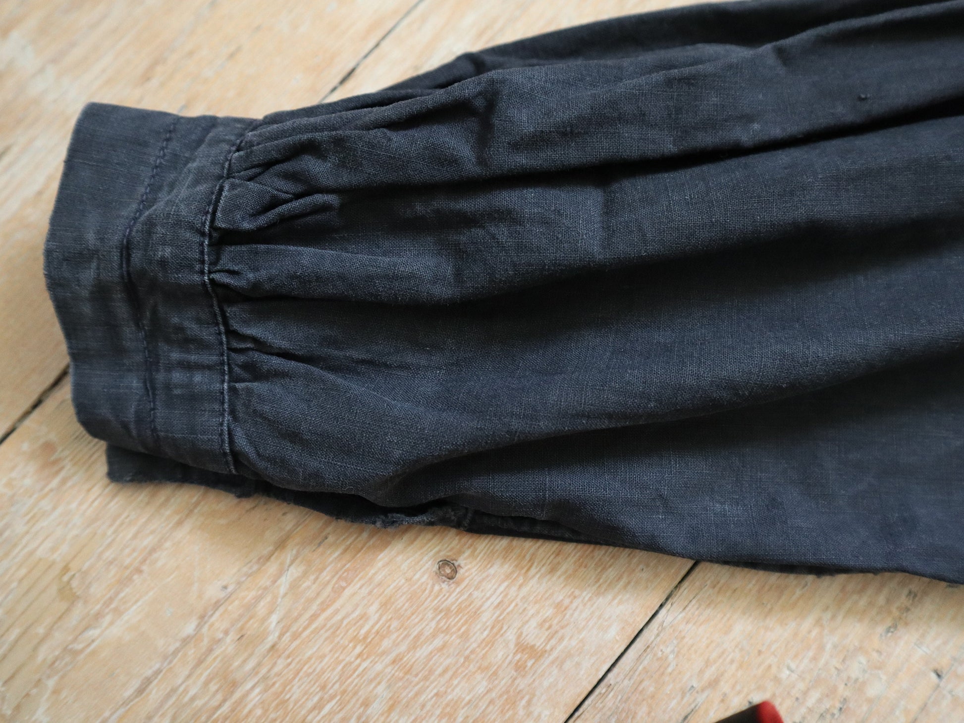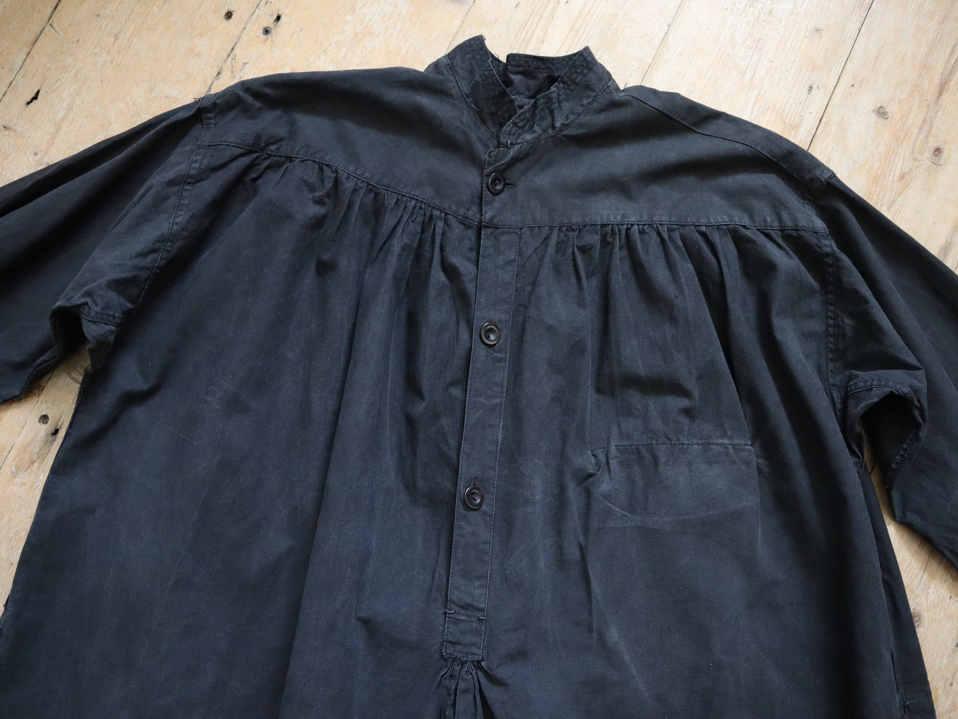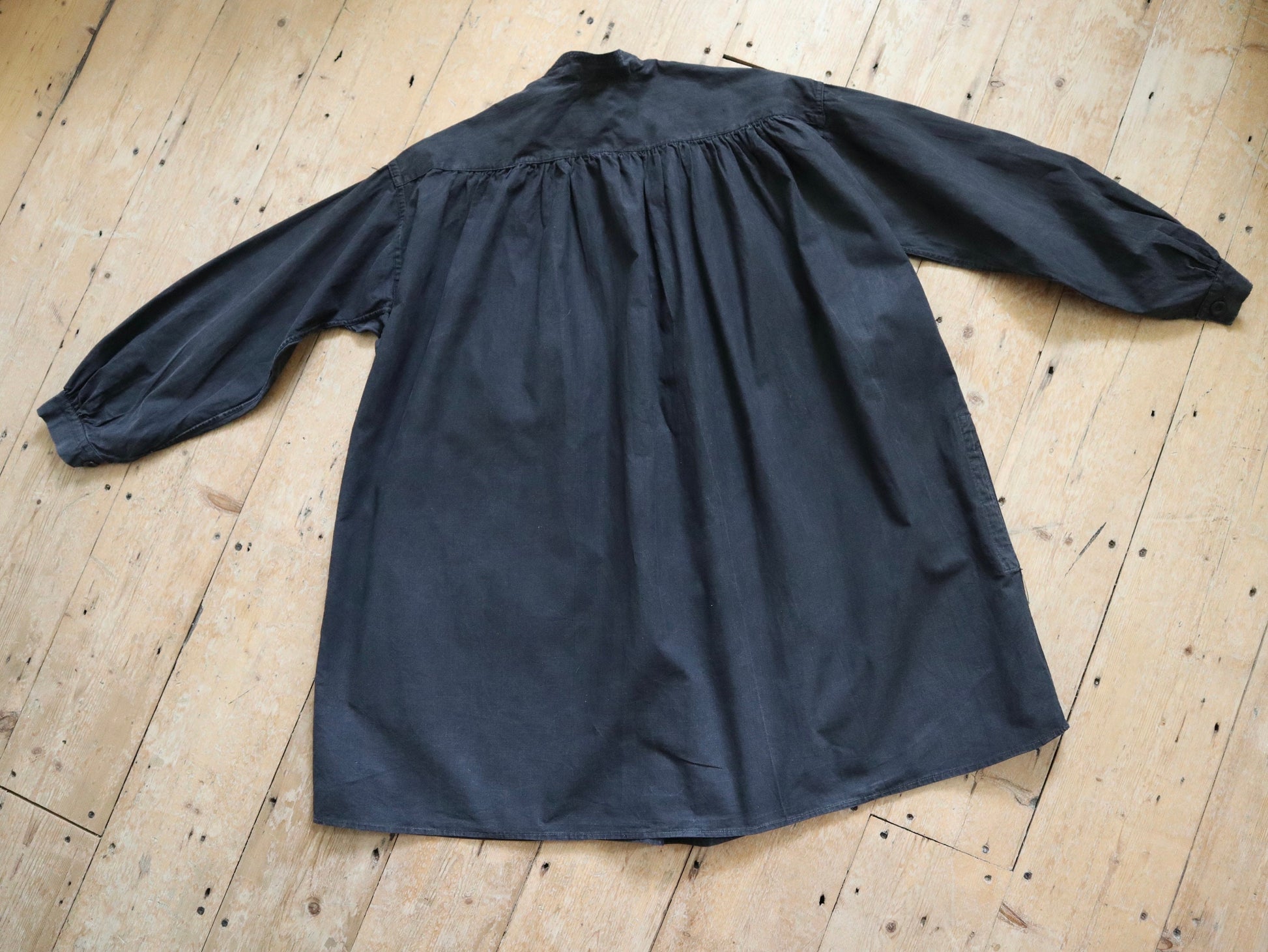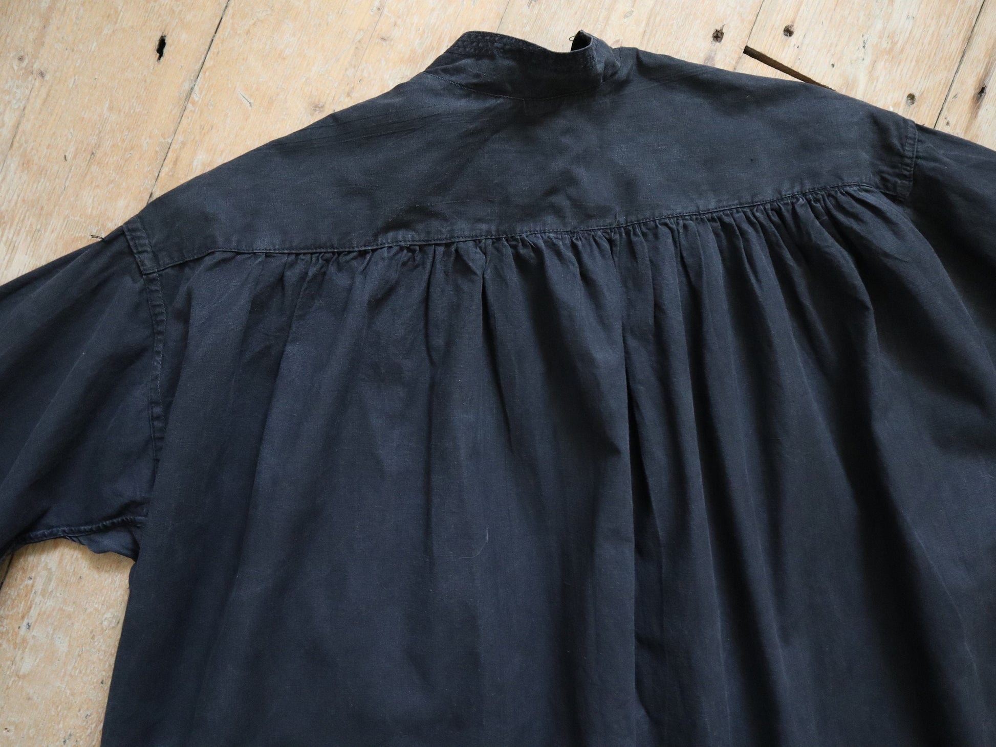 Early 1900s French maquignon (horse trader) indigo smock. This is such a dark shade that it appears black. High collar.