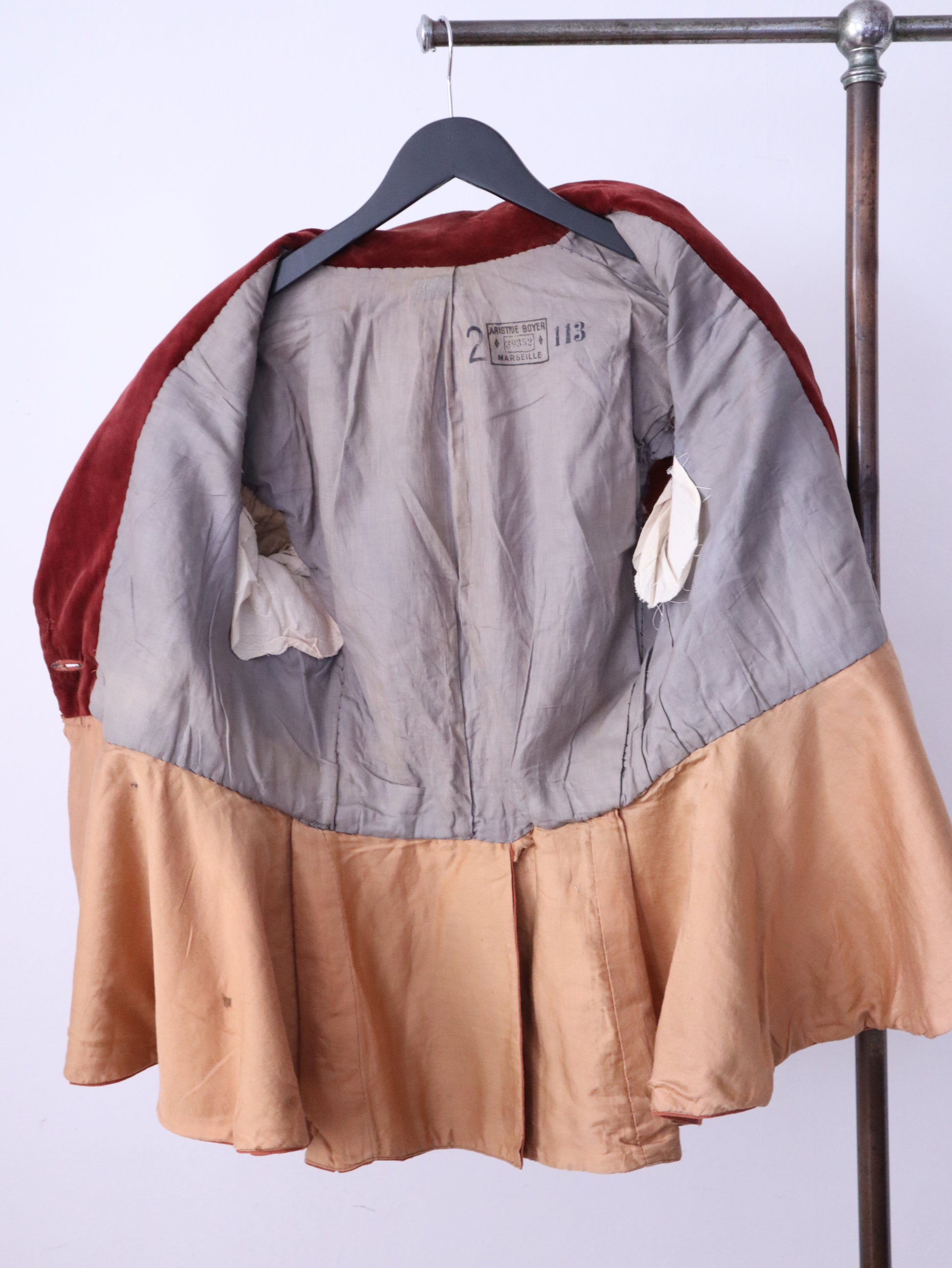 Antique Early 1900s French Opera Costume Jacket | Hand-Stitched Wool with Velvet Trim & Brass Buttons | Made in Marseille by Aristide Boyer