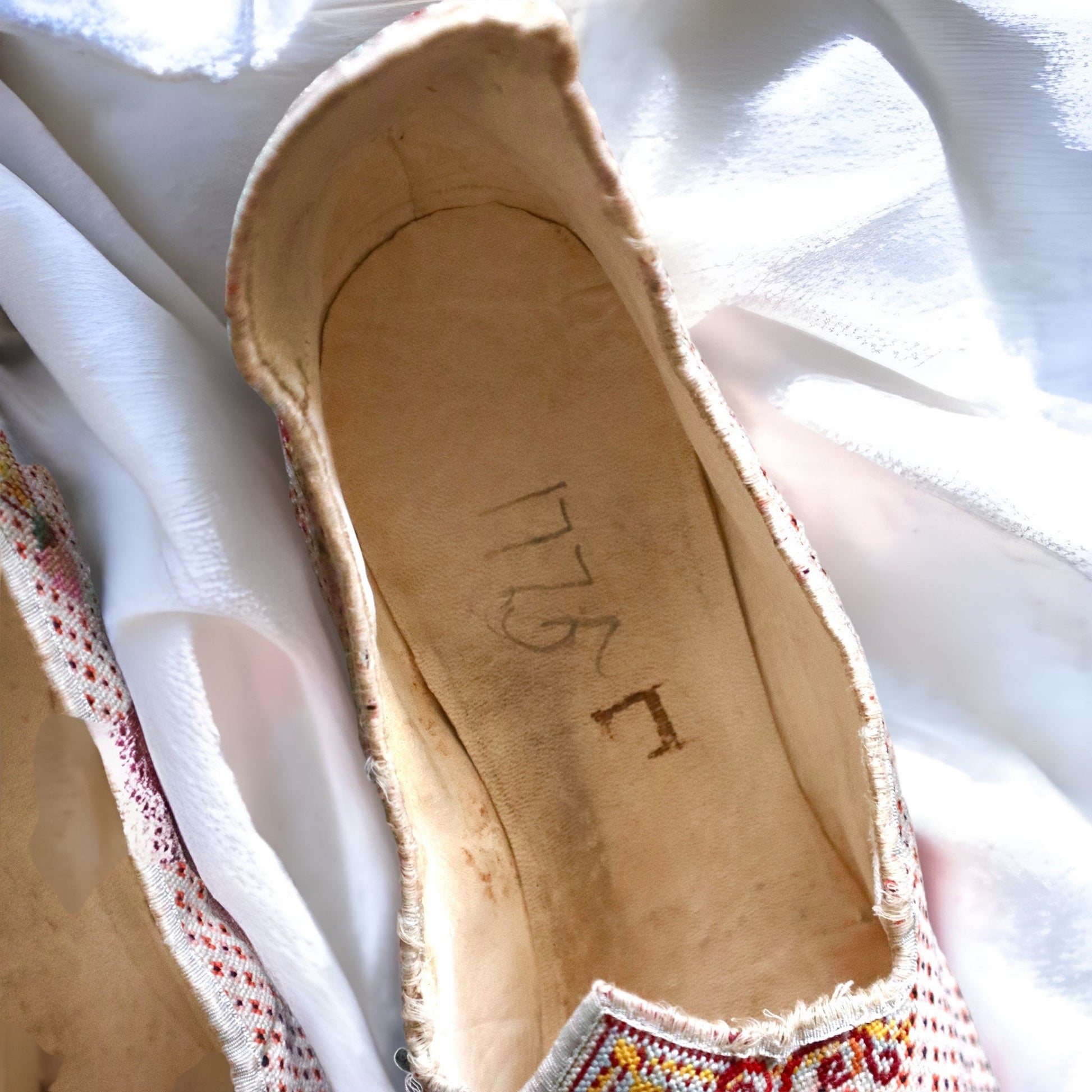 Rare 1770s French Needlepoint Slippers – Dated 1775, Leather Sole