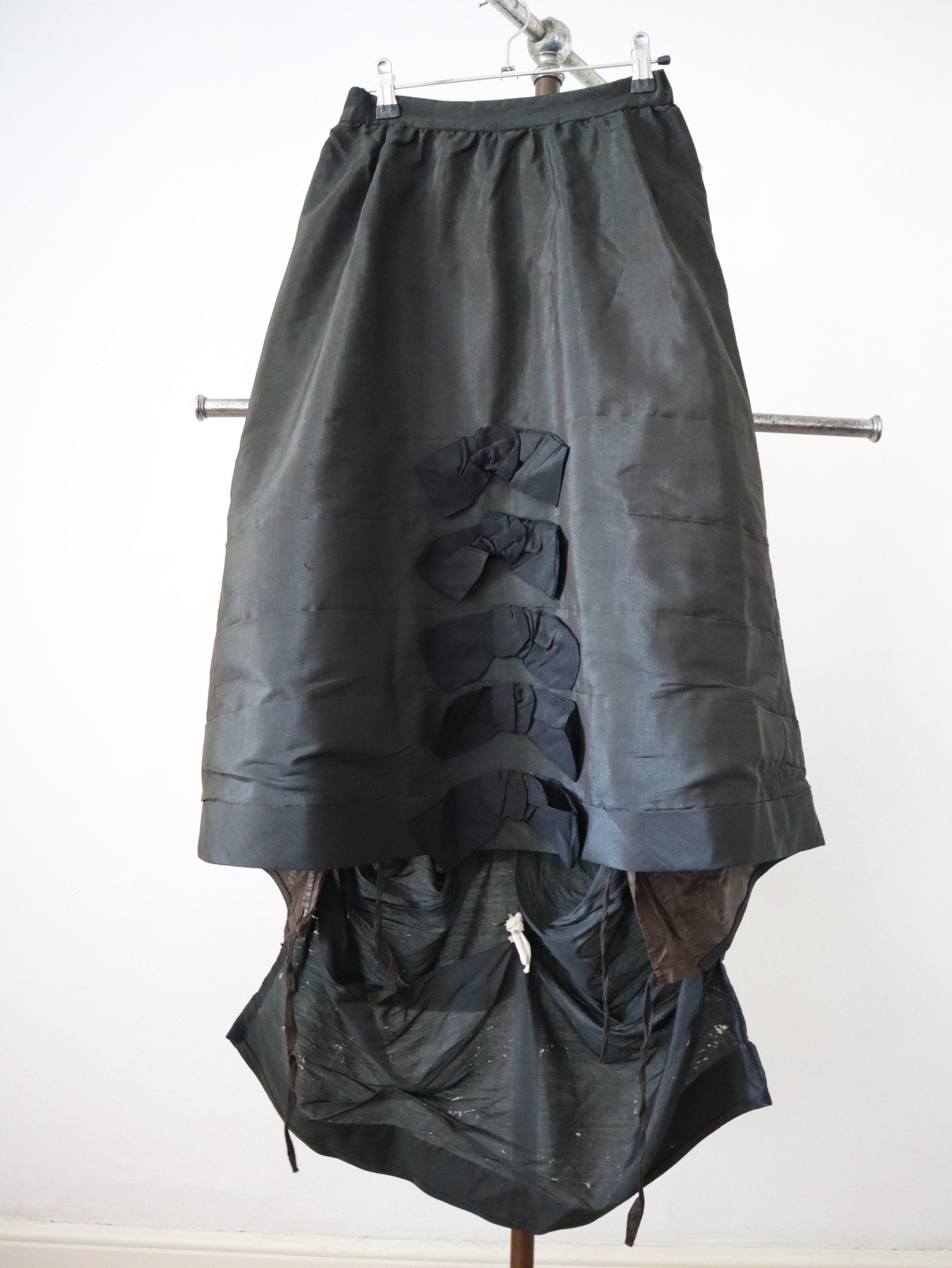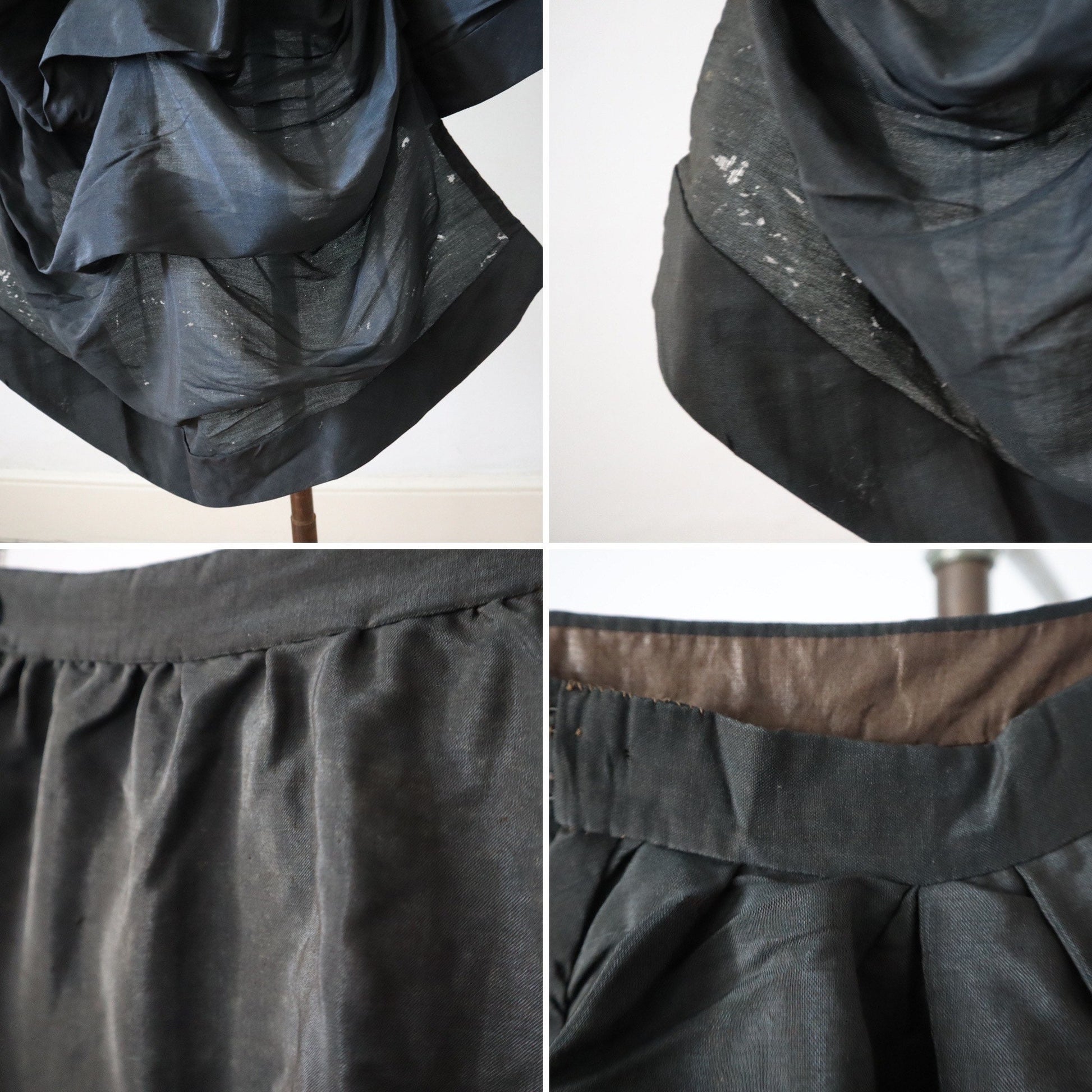 Antique French Black Silk Two Piece Outfit Costume Bodice Skirt Bows 19th Century