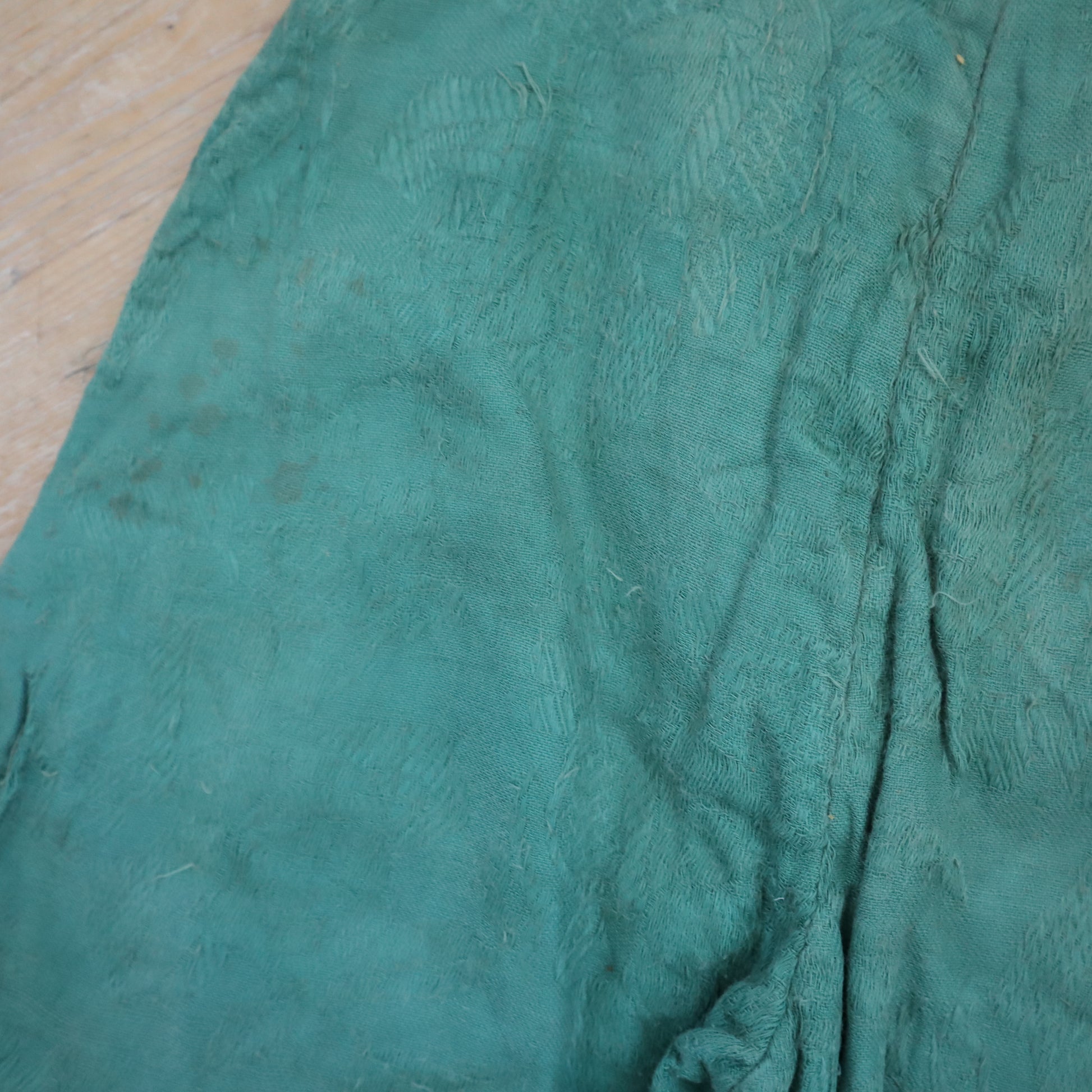 Condition: freshly laundered with cool water and a gentle detergent. Some rust-like marks. The fabric at the edge of the patch is loose Please inspect the photos and ask any questions you may have.