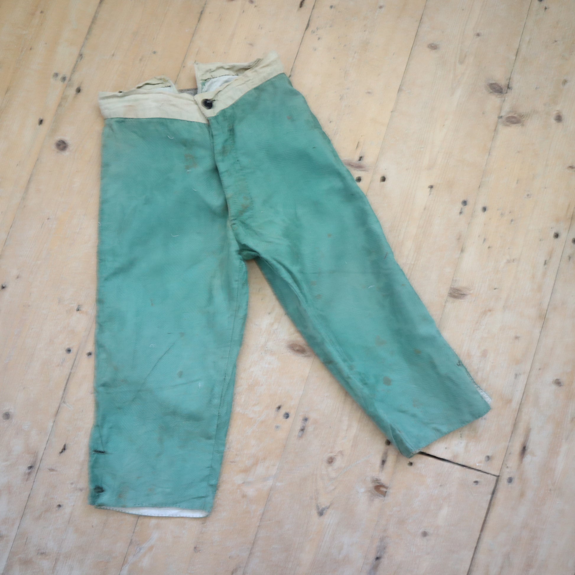 Antique French Child’s Theatre Costume Breeches Green Woven Cotton