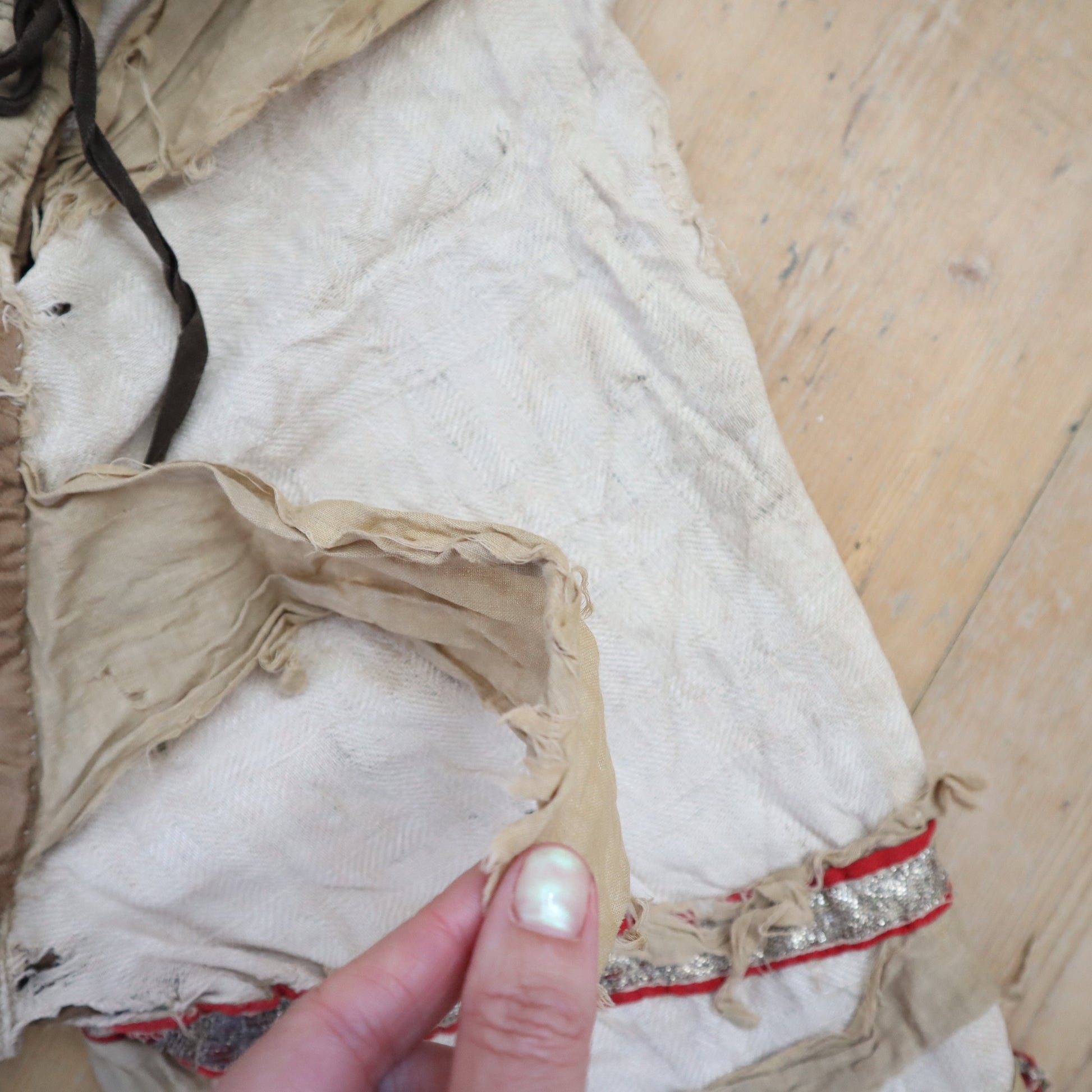 Antique French Child’s Theatre Costume Breeches Renaissance style Slash Puff Cotton Worn Wrecked