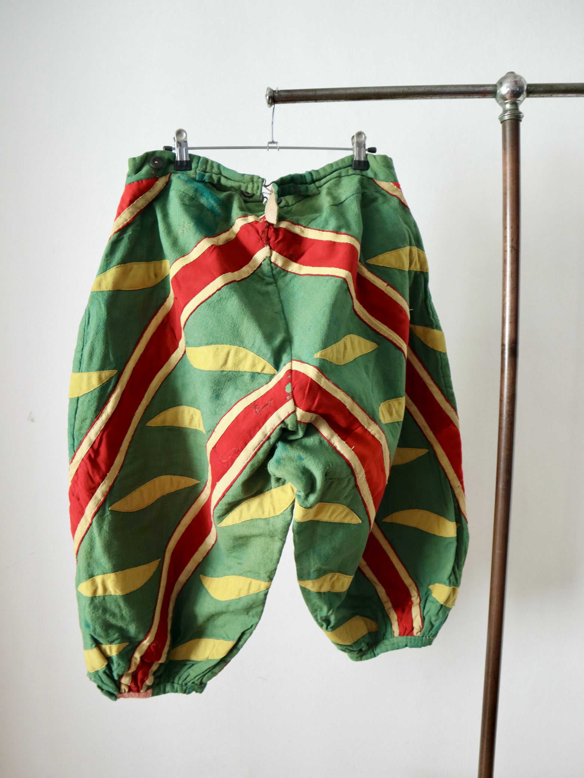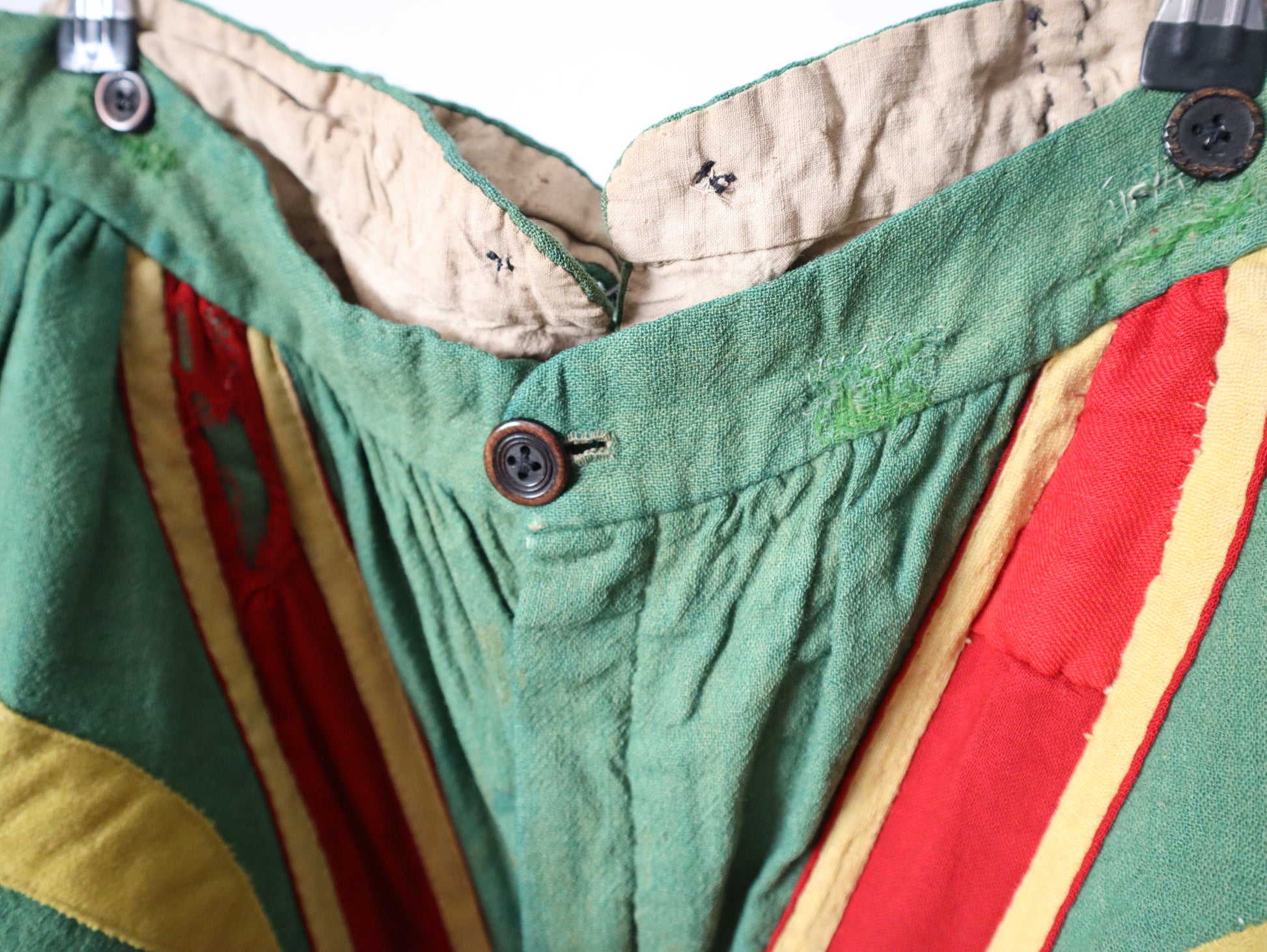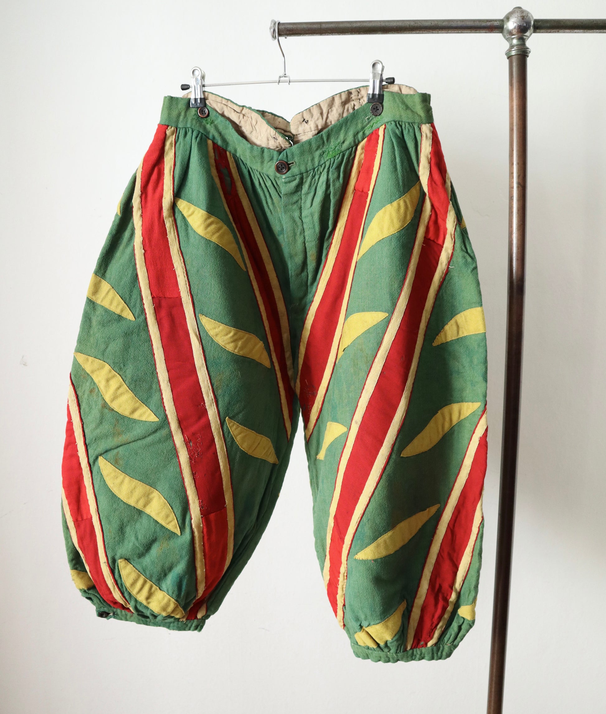 Antique French Opera Costume Breeches Trousers Pants Wool linen Renaissance Style Slash 1900 Green Red Yellow Balloon Leg