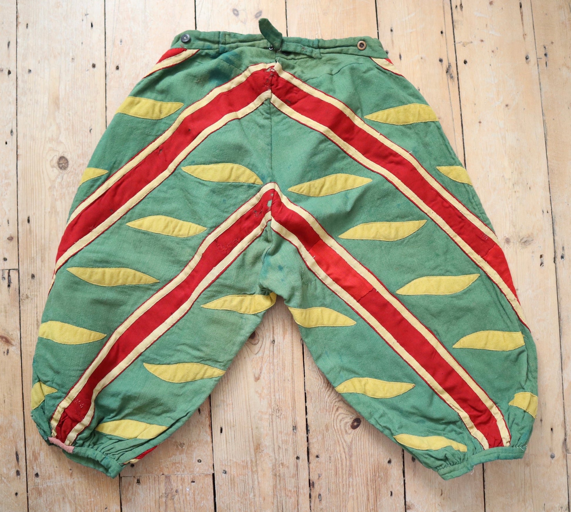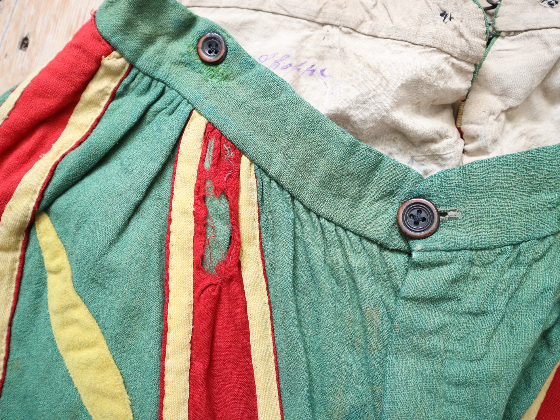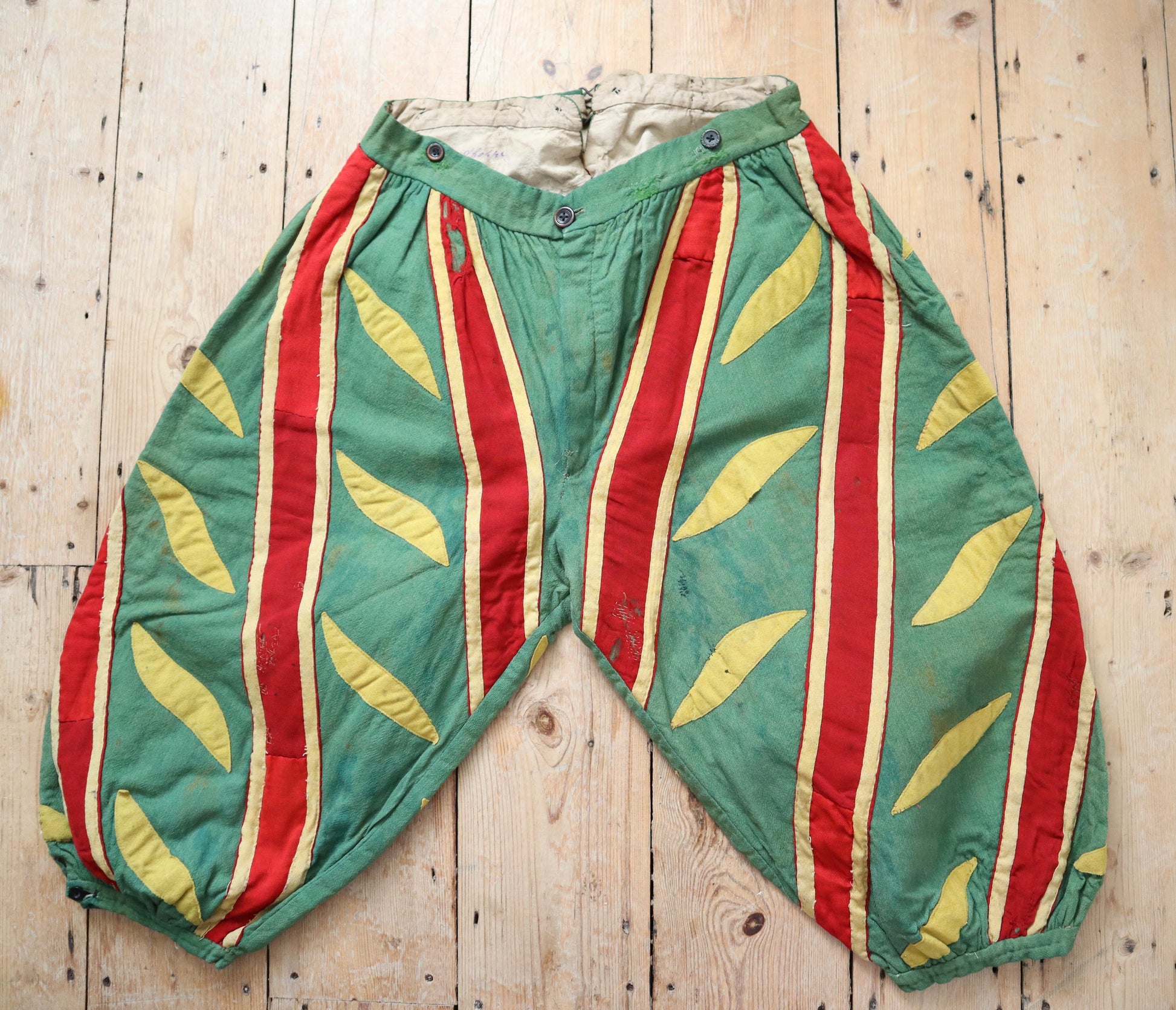 Antique French Opera Costume Breeches Trousers Pants Wool linen Renaissance Style Slash 1900 Green Red Yellow Balloon Leg