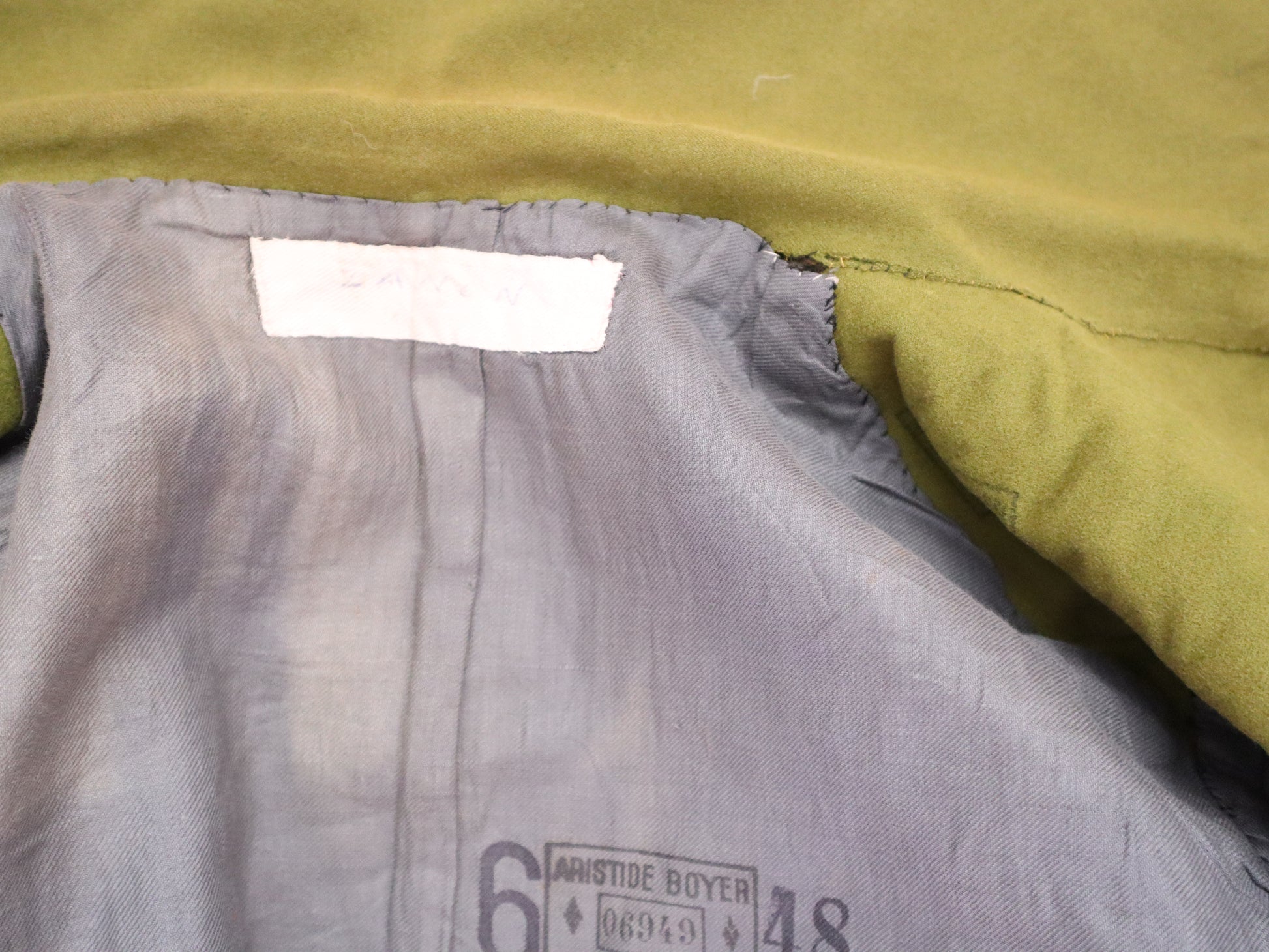 This antique French tailcoat was made by Aristide Boyer of Marseille, likely in the early 20th century for theatre or opera use. Inspired by late 18th- to early 19th-century menswear, the jacket is tailored in a classic Regency-style cut with a cropped front, long tails, and a double-breasted closure.