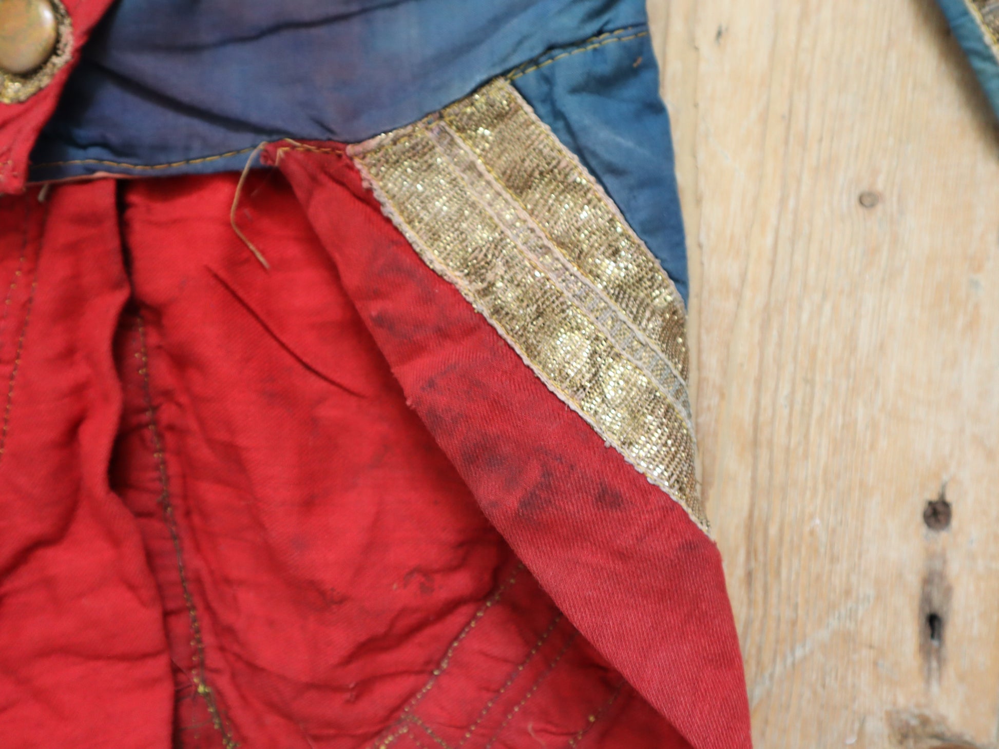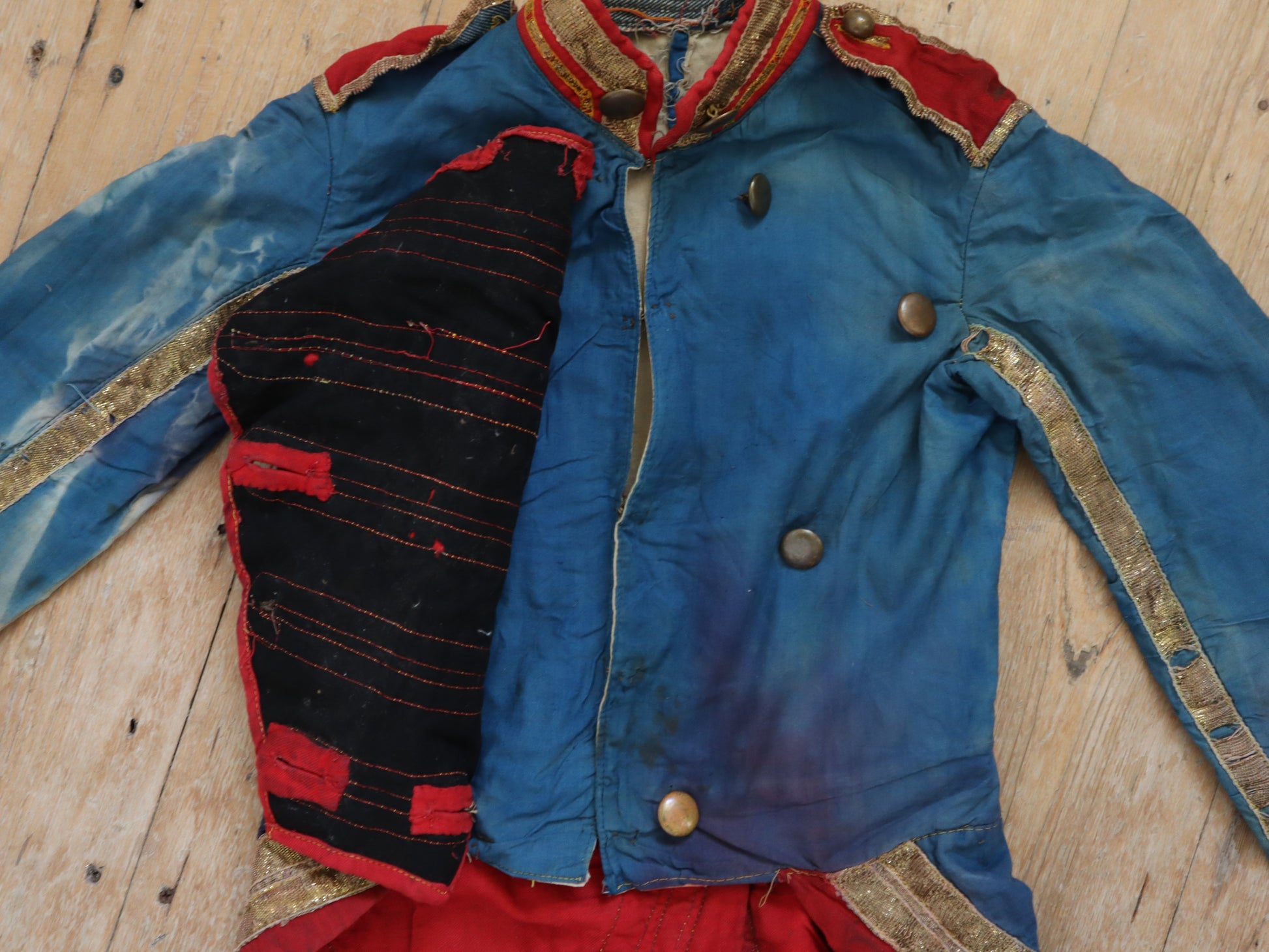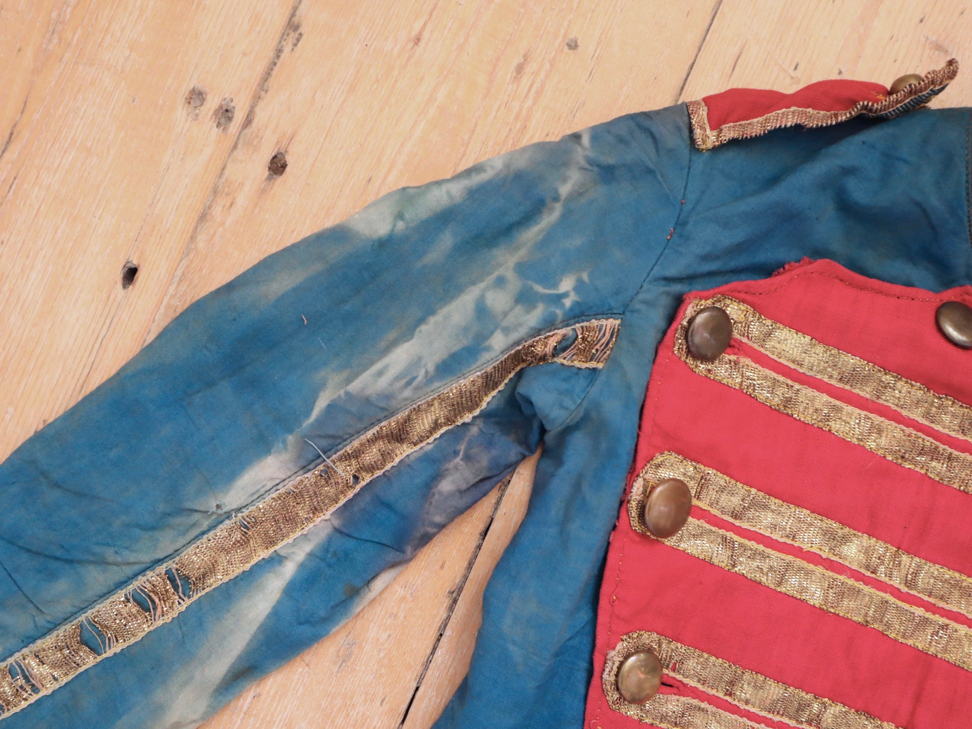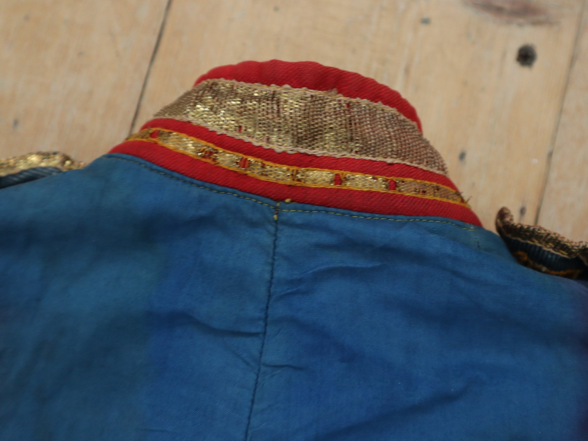 Antique French Theatre Costume 19th Century Military Style Indigo Blue Red Sun Fade Gold Ribbon Trim