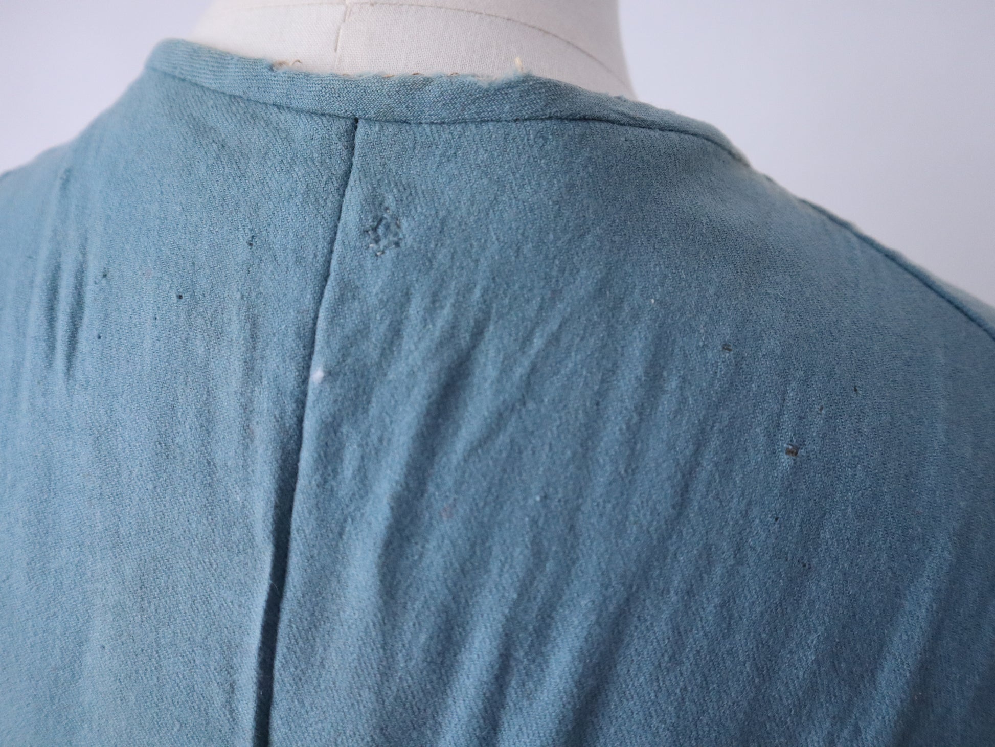 - Scattered small moth holes throughout, including several on the back (see photos)