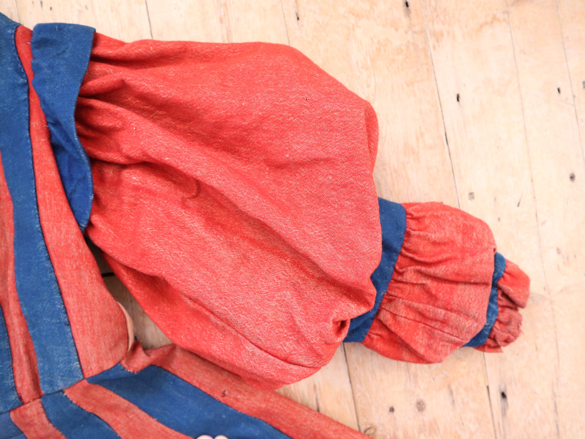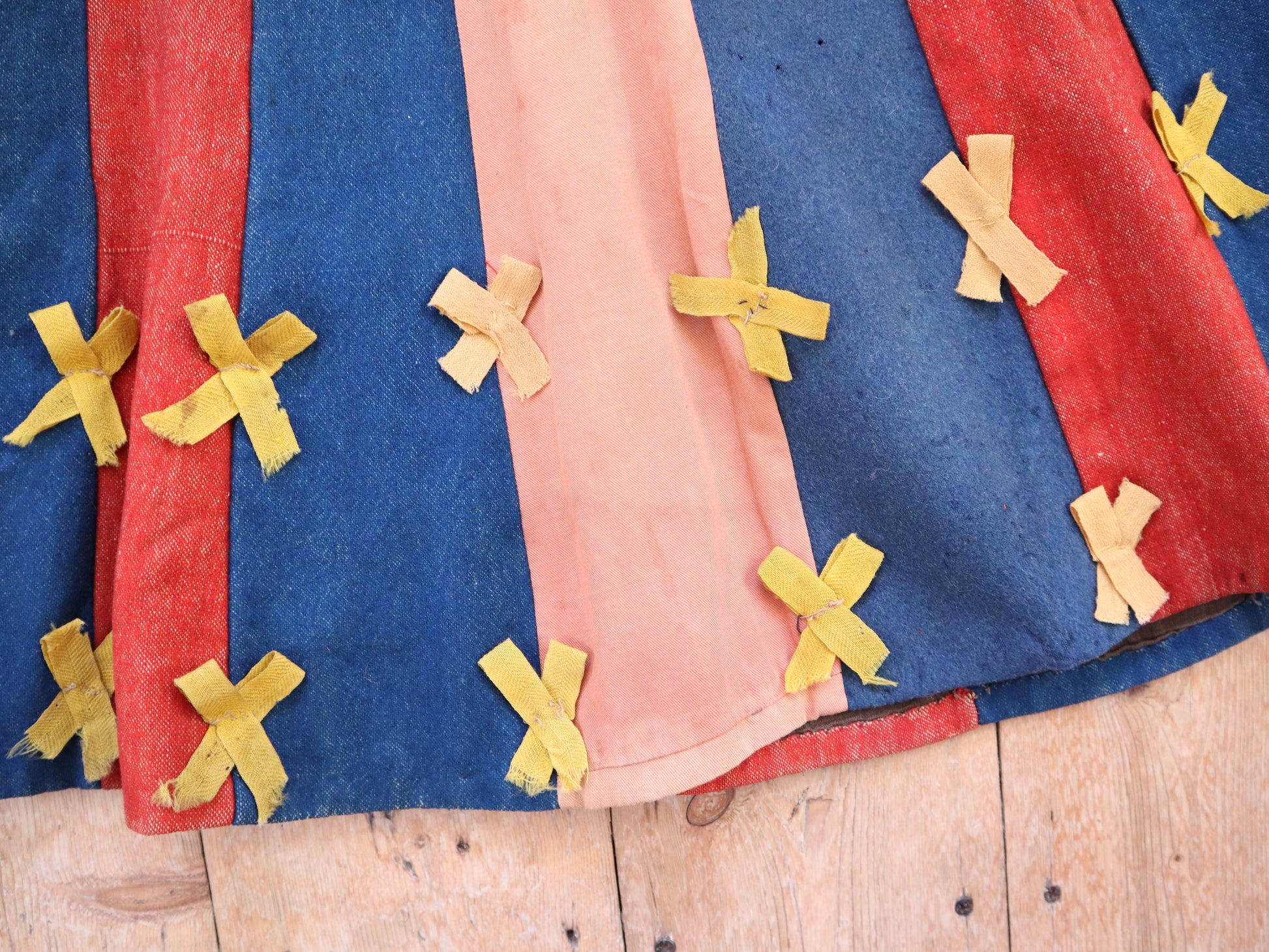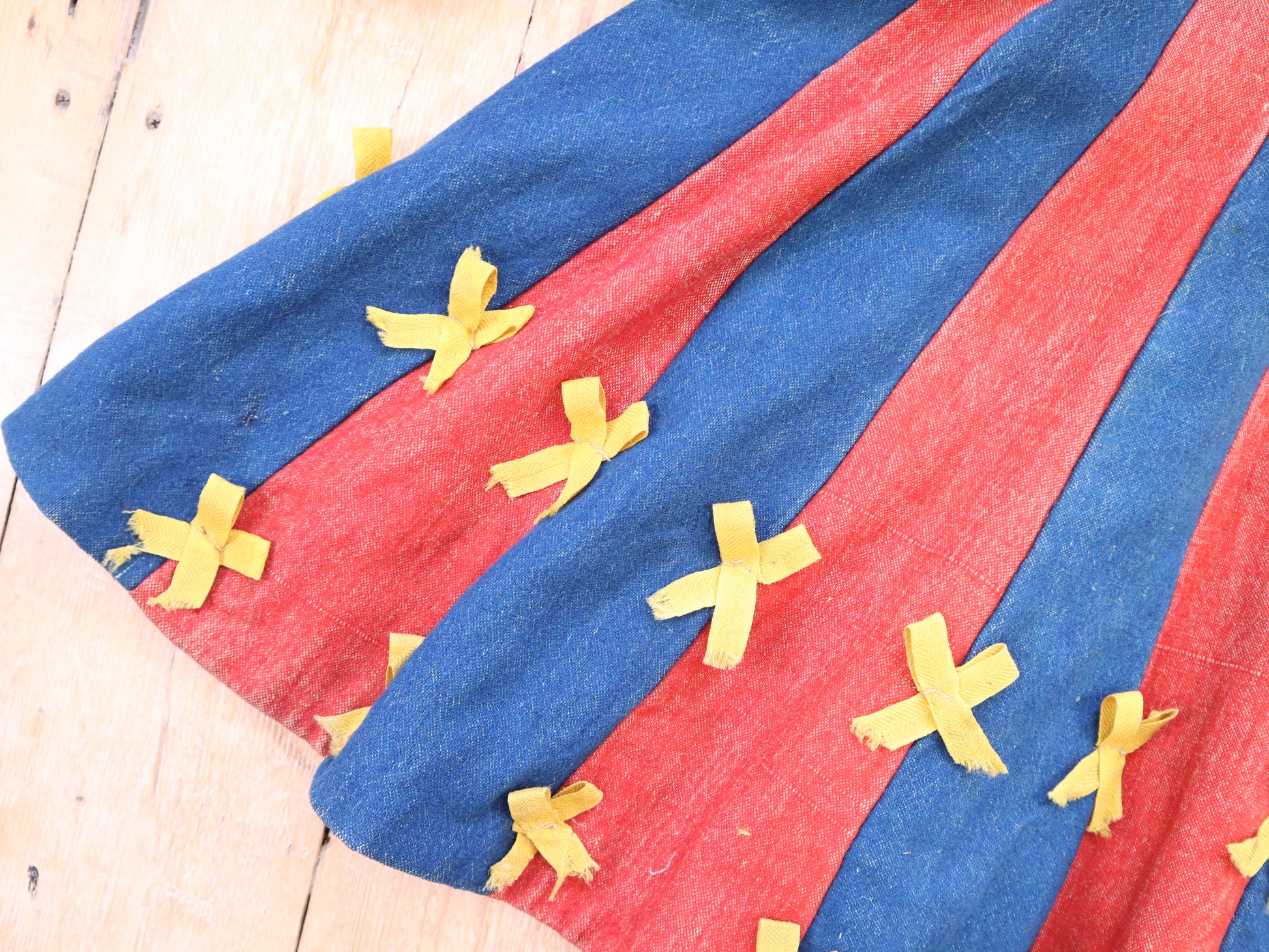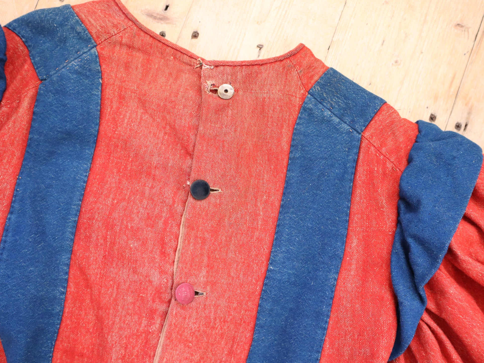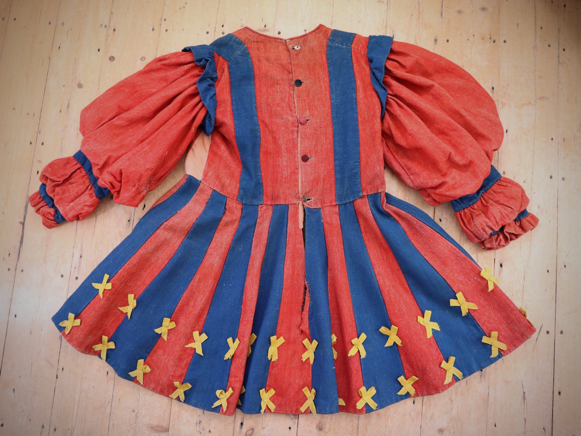 Antique French Theatre Costume Tunic Dress Renaissance Medieval Style Red Blue Stripes Yellow Bows Rare