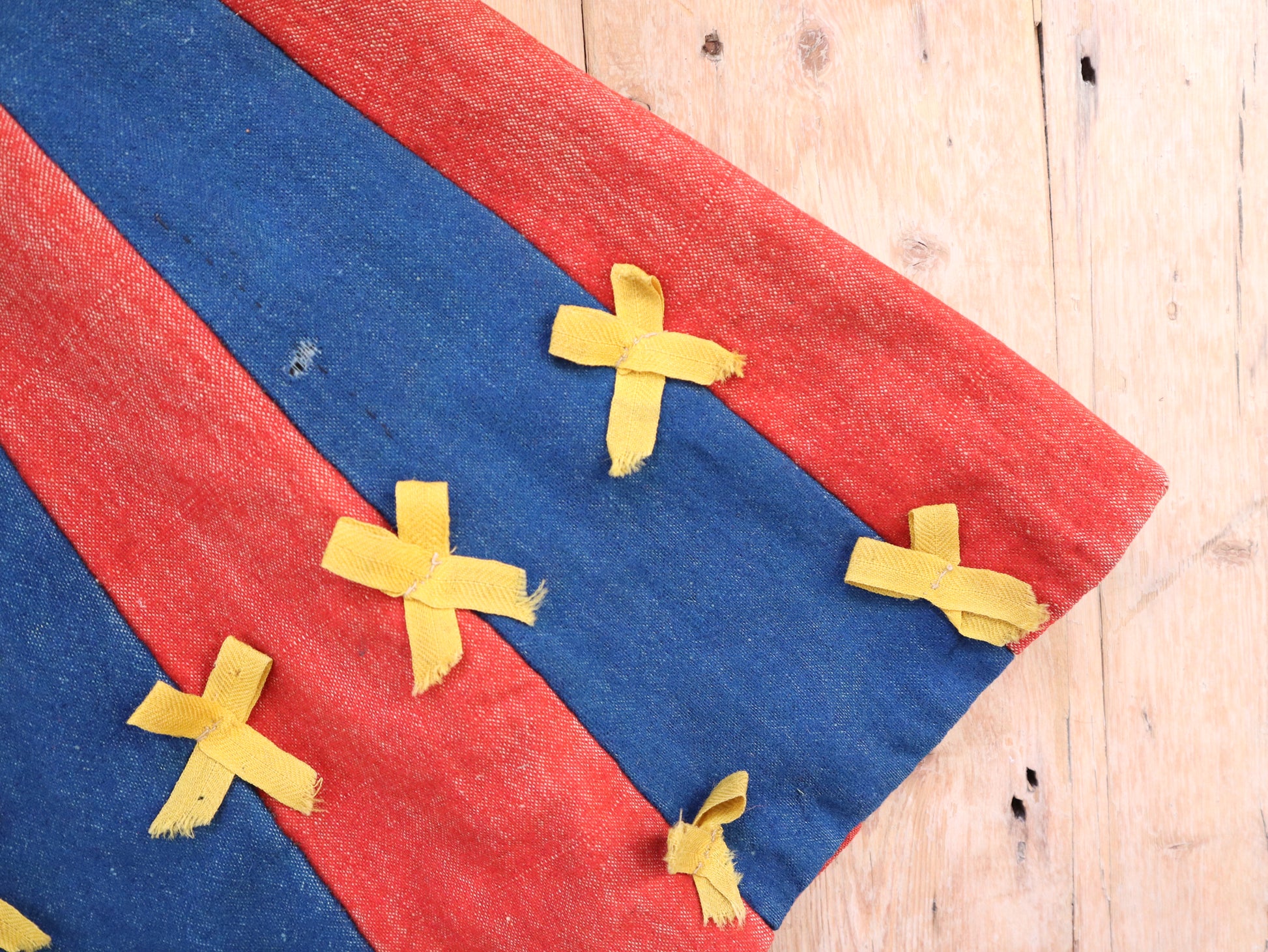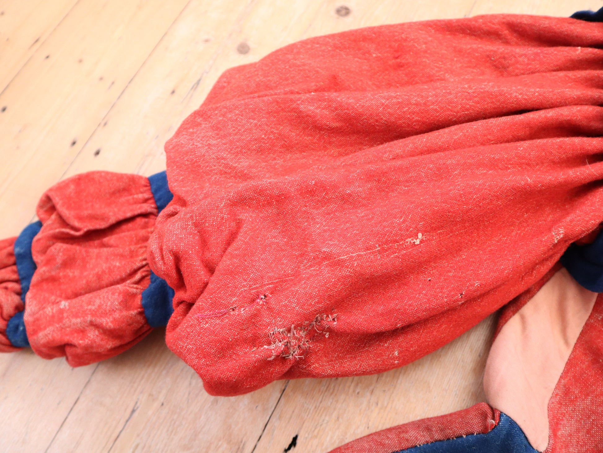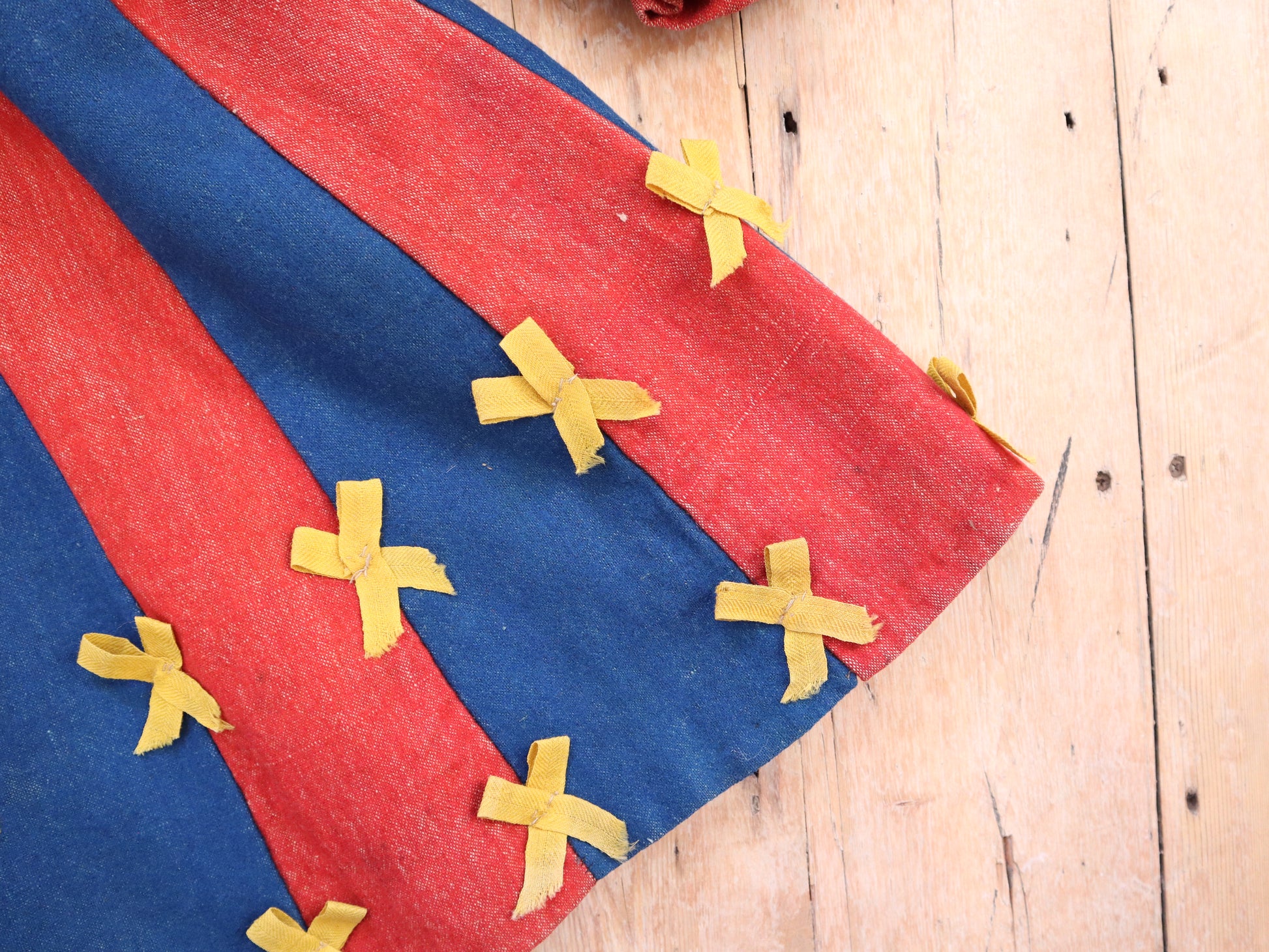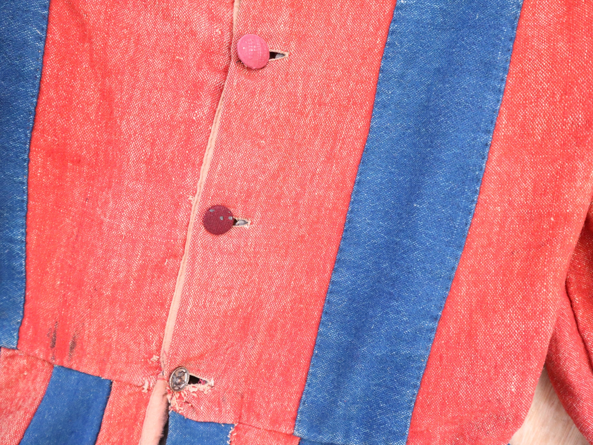 Antique French Theatre Costume Tunic Dress Renaissance Medieval Style Red Blue Stripes Yellow Bows Rare
