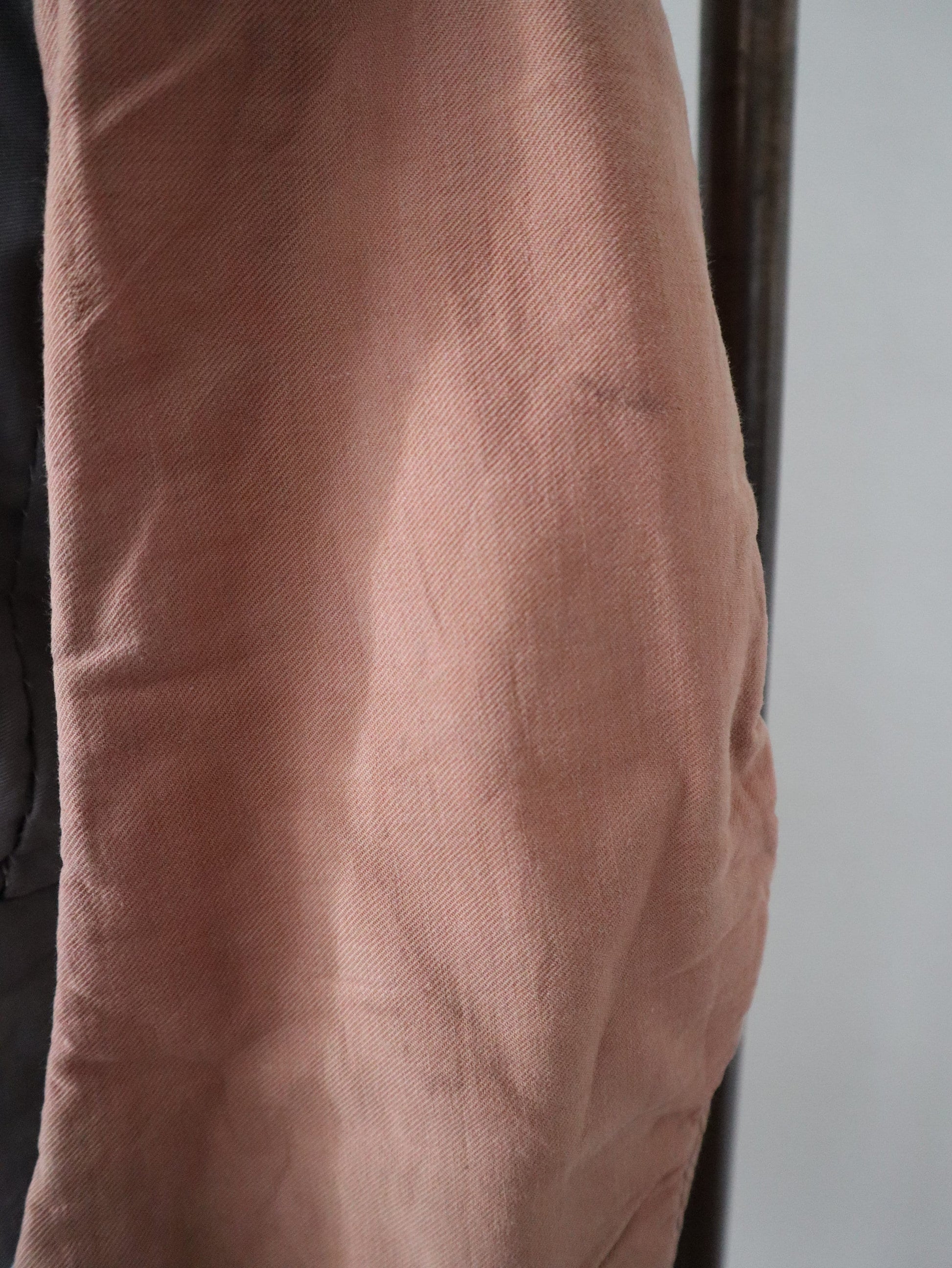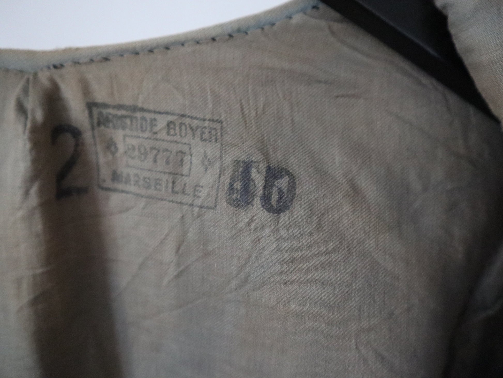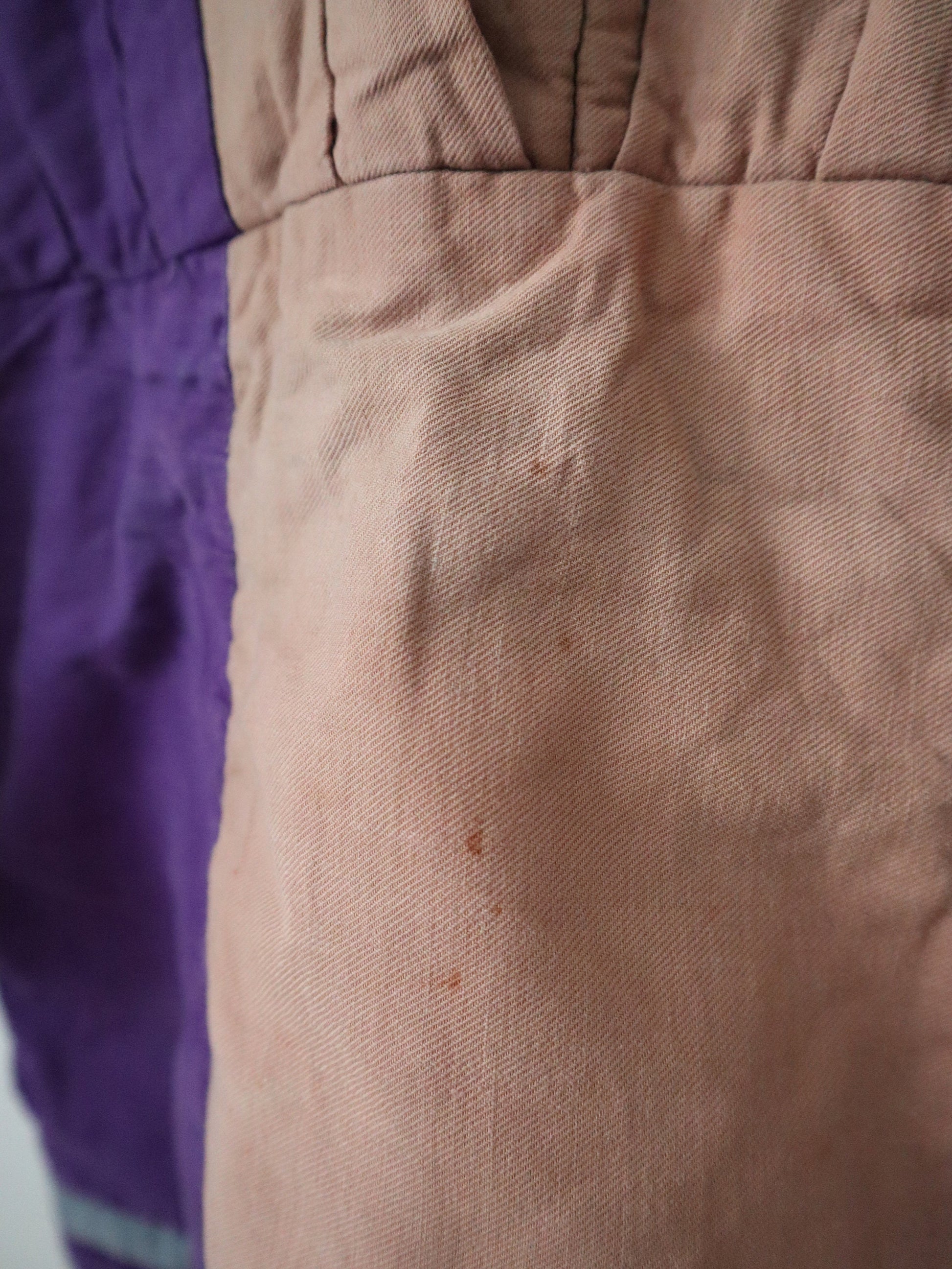 Great condition overall. Freshly laundered. There is some purple colour transfer on the front pink folded panels. There are some small rust like marks on the lower front. Two buttons are missing at the back.
