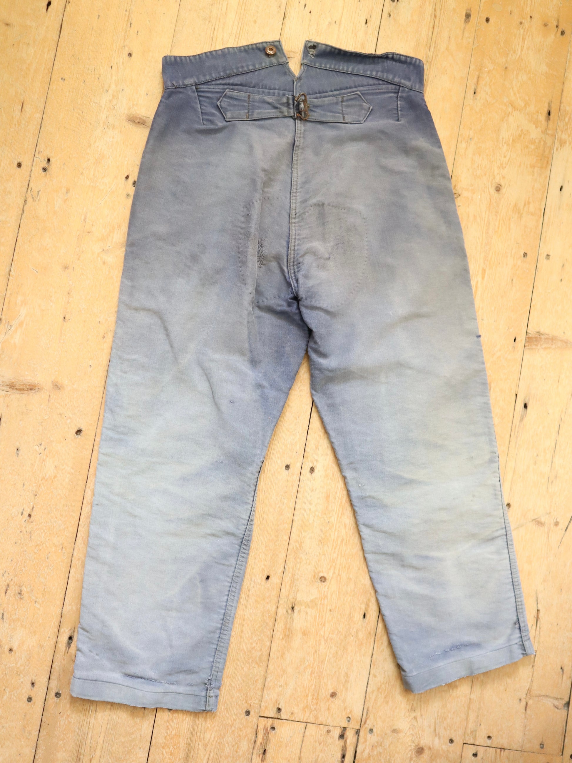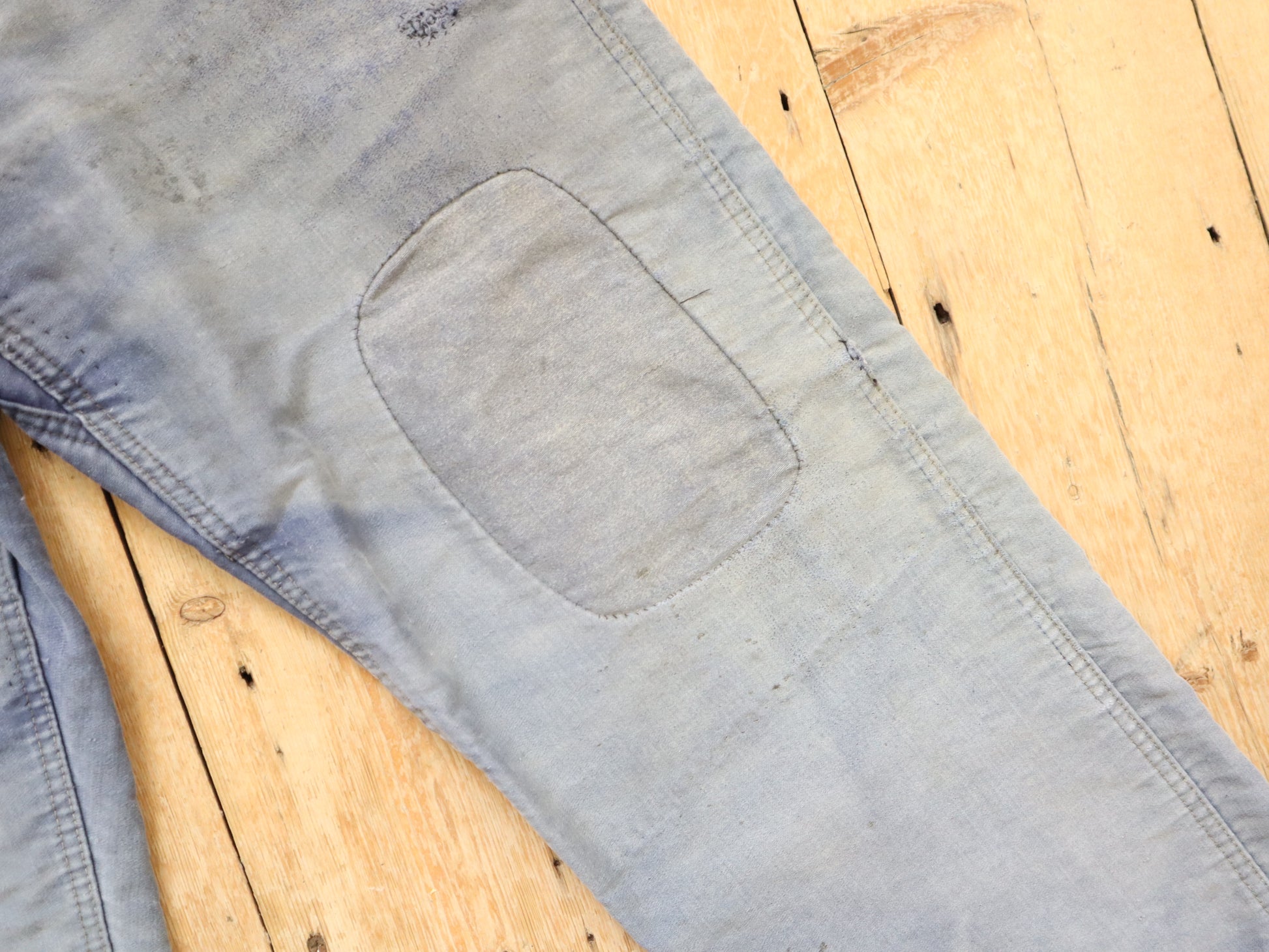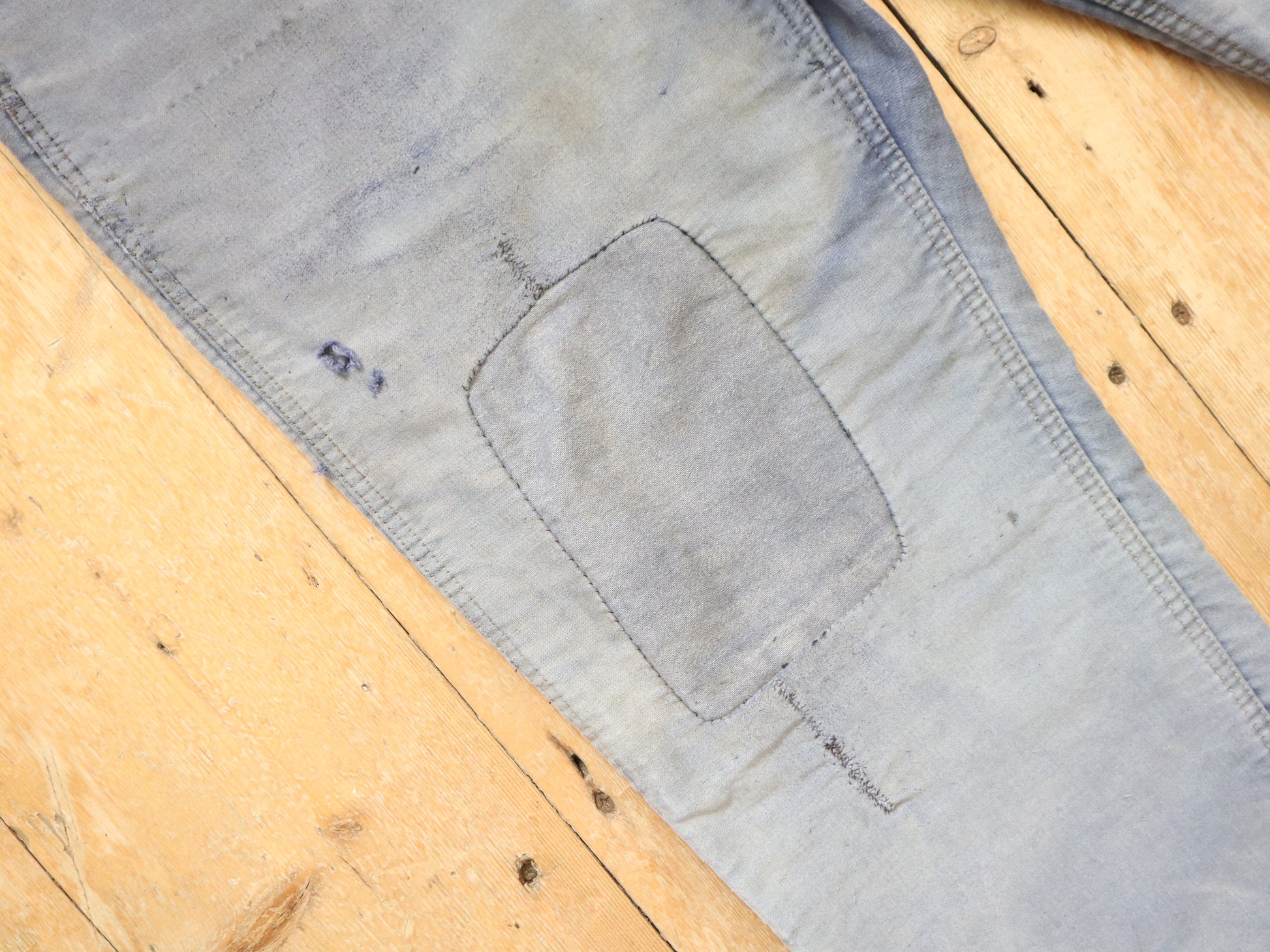 1950s French Le Salvetal Blue Moleskin Workwear Trousers Pants Patched Repairs Darned