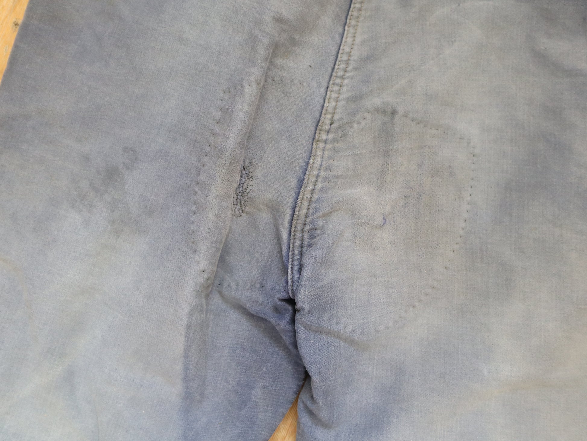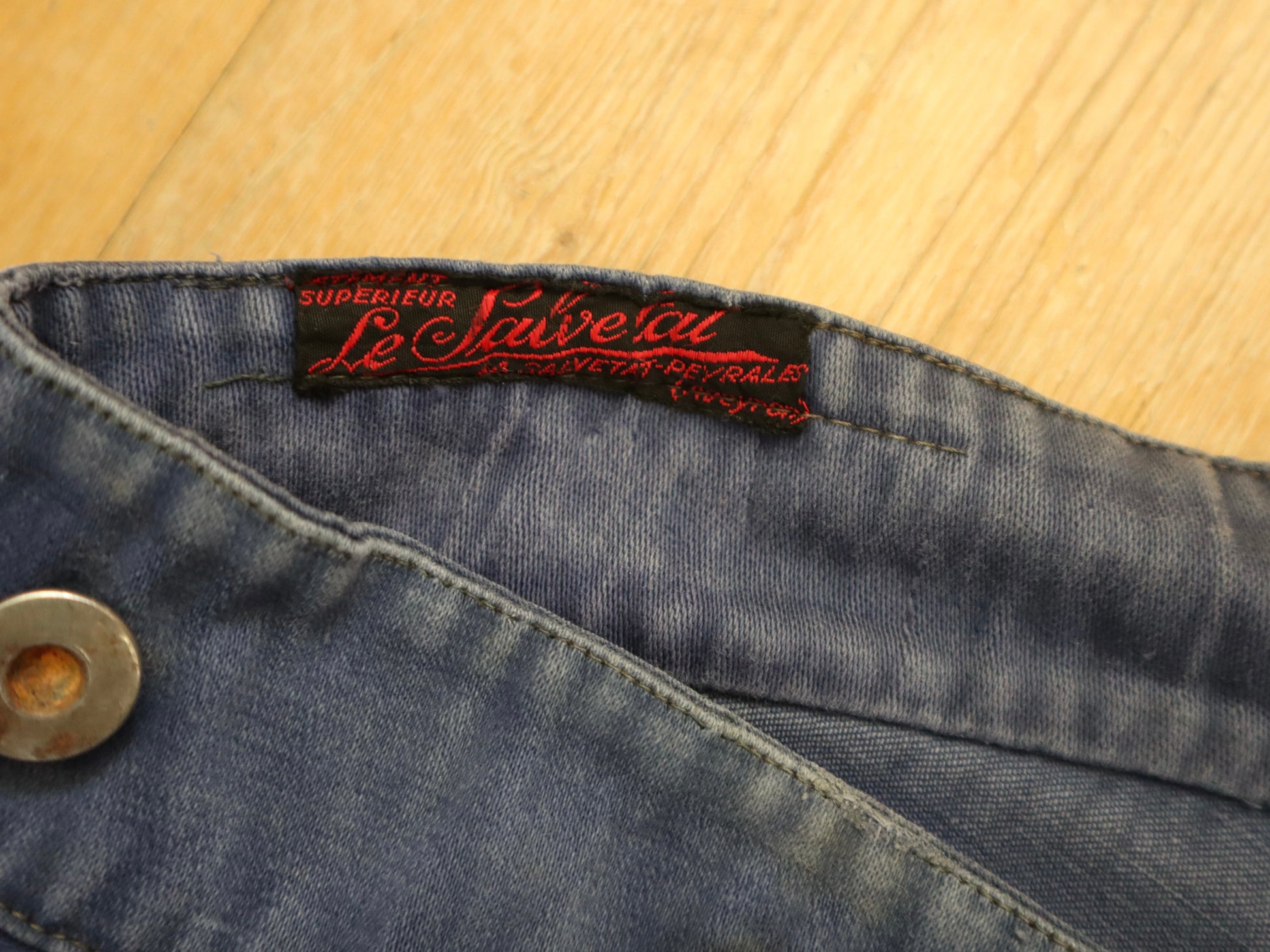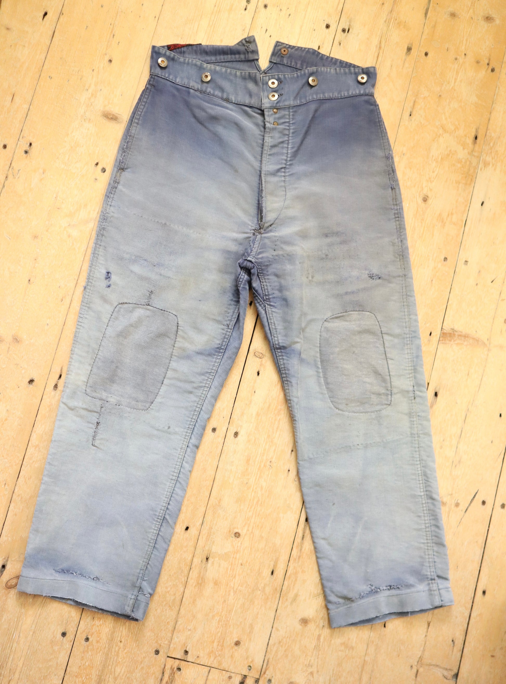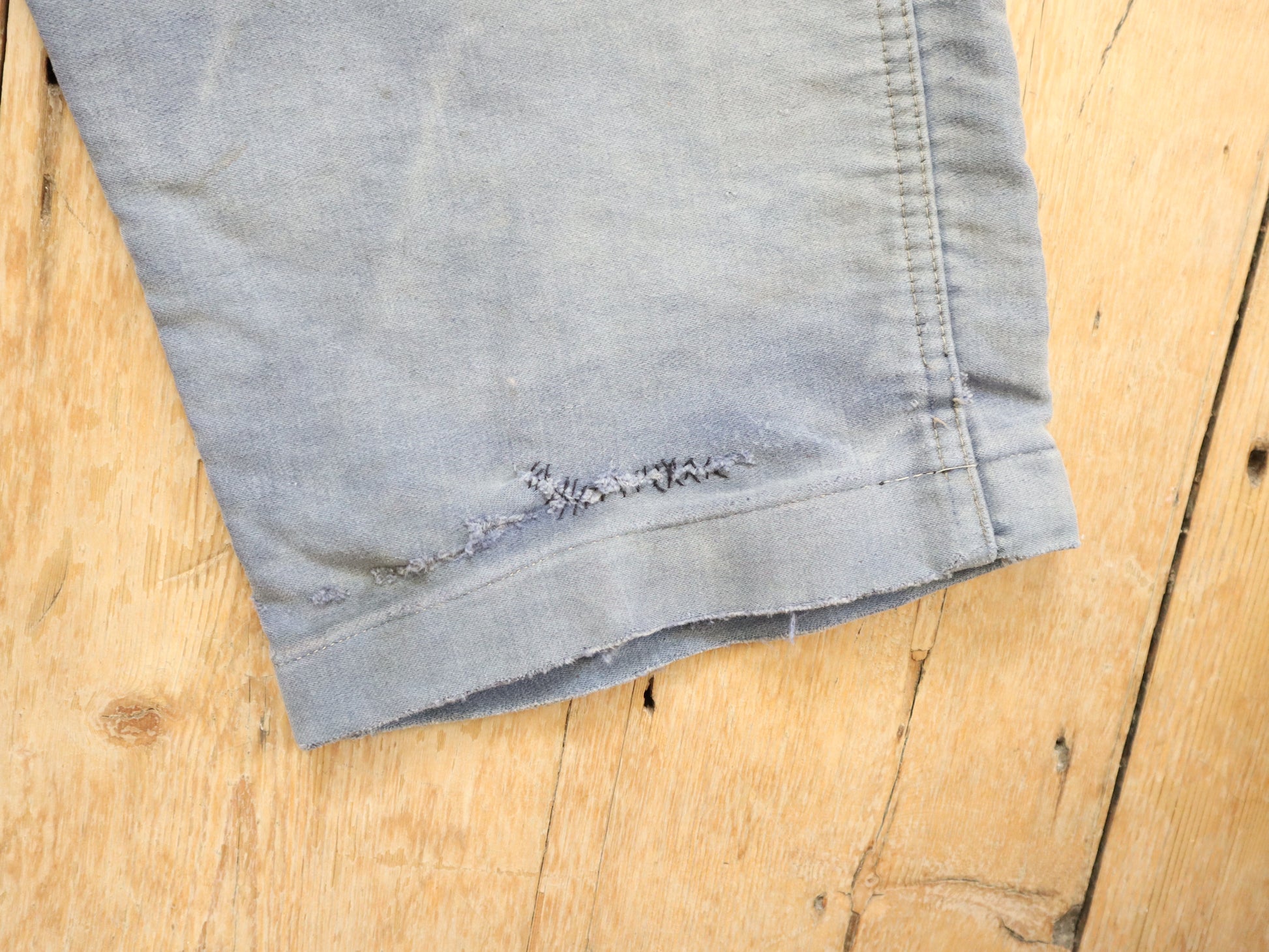 1950s French Le Salvetal Blue Moleskin Workwear Trousers Pants Patched Repairs Darned