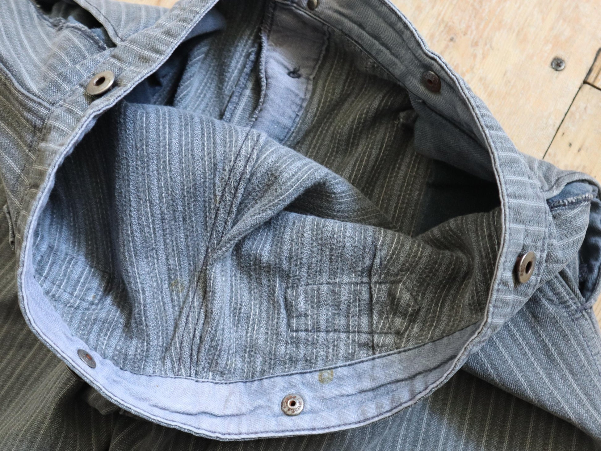 French workwear trousers light grey striped cotton cinch back Chore Pants