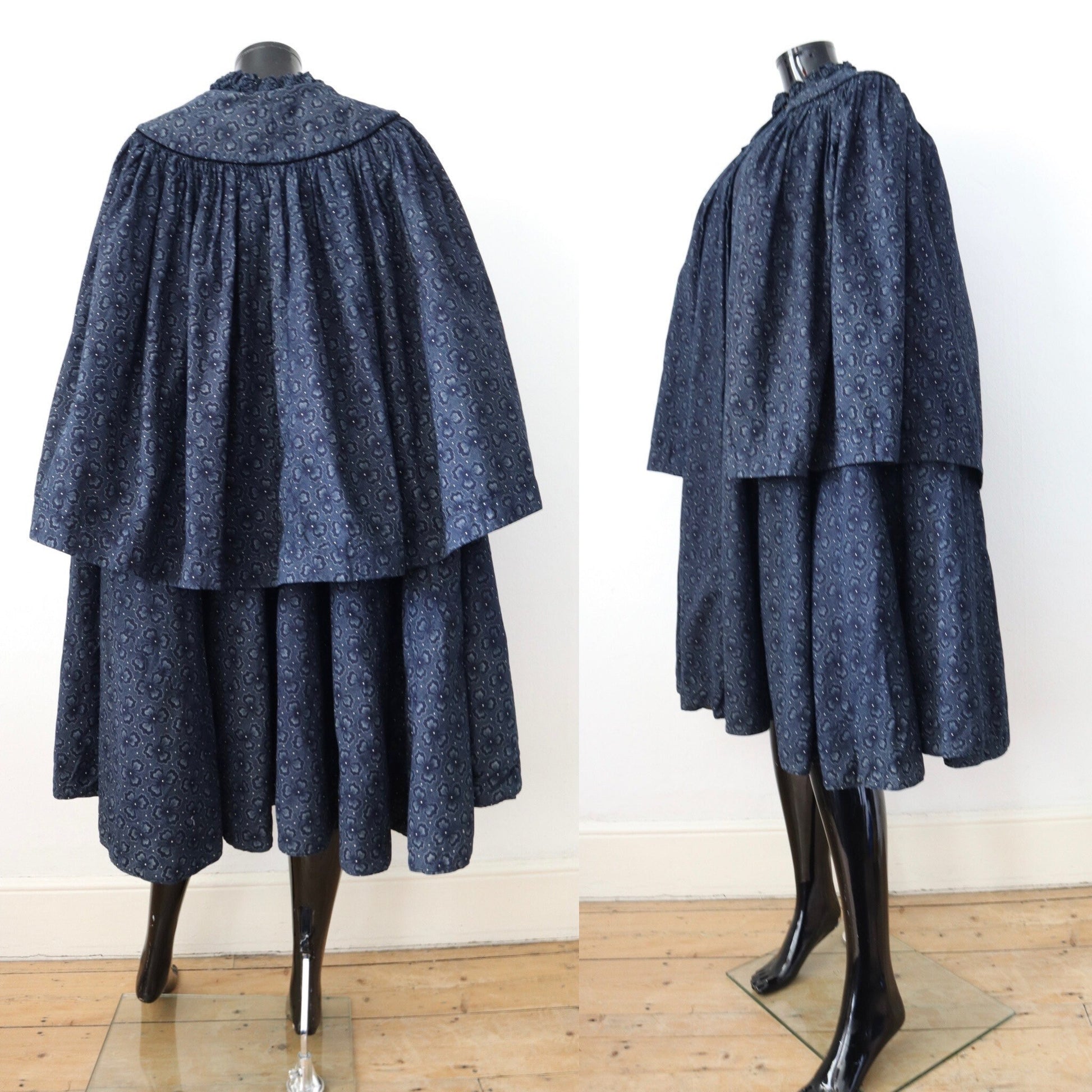 Antique 1880s German Indigo Block Print Cape – Wool Lined