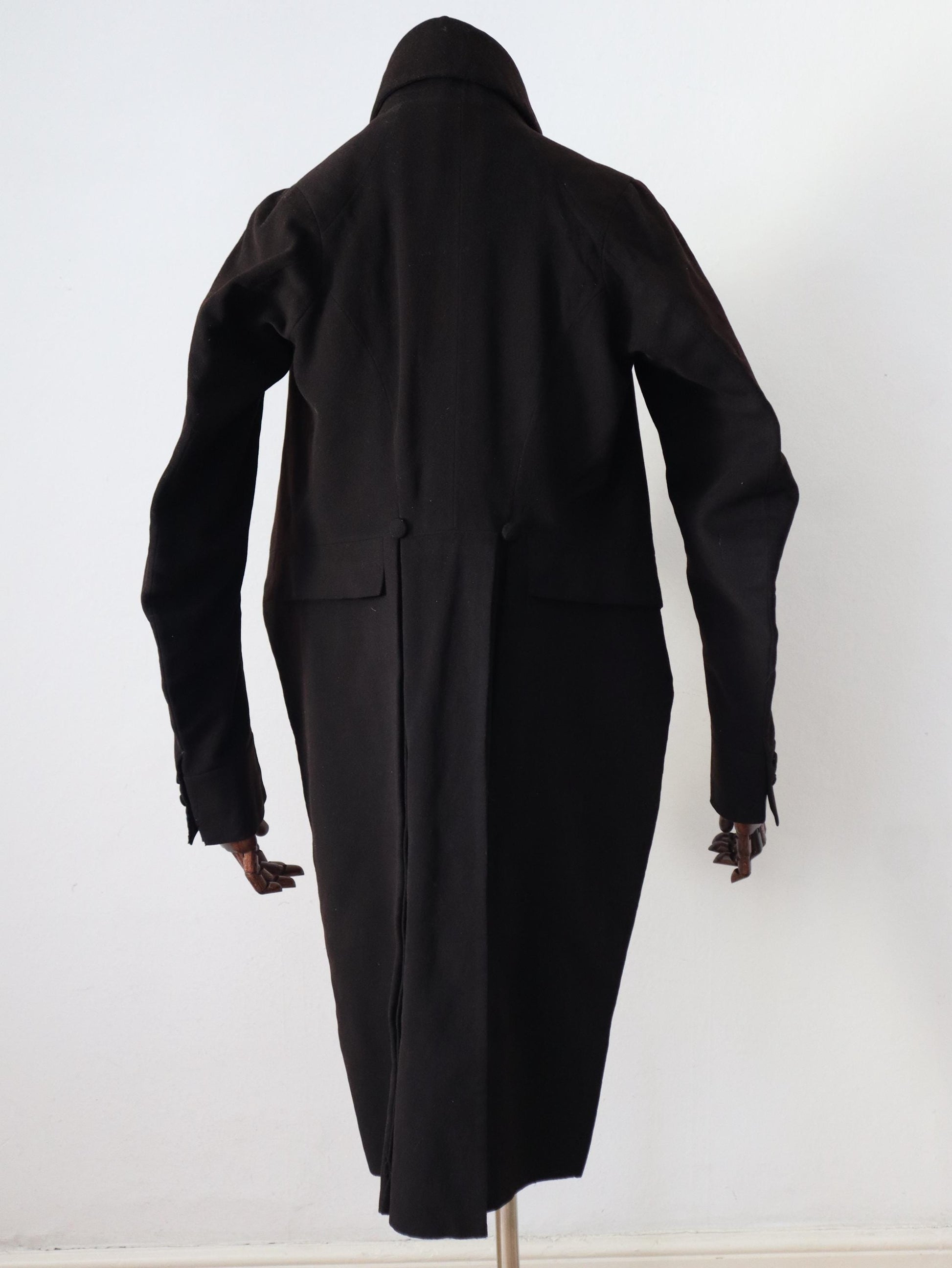 Early and rare 1800s French black wool tailcoat.