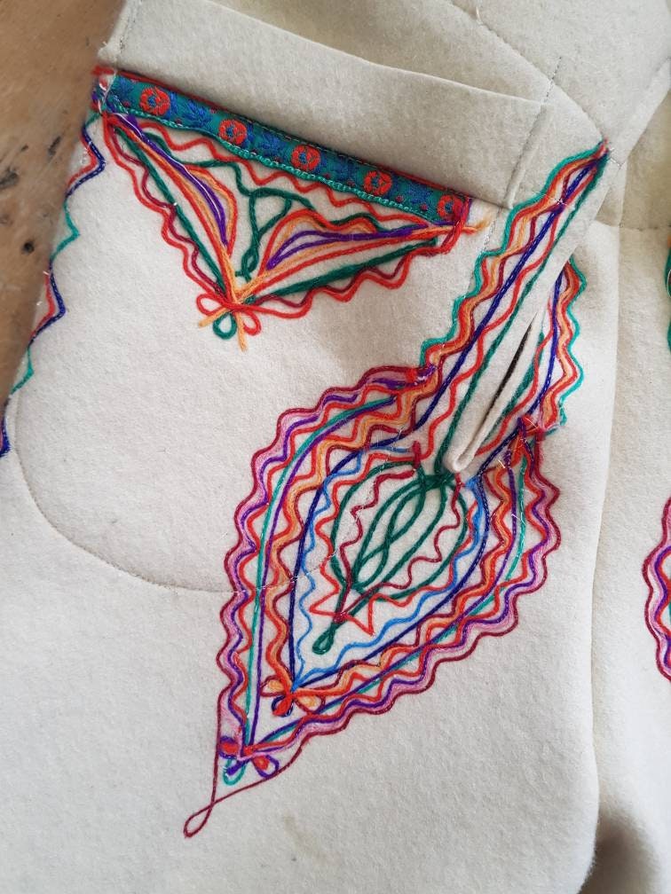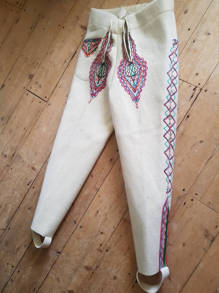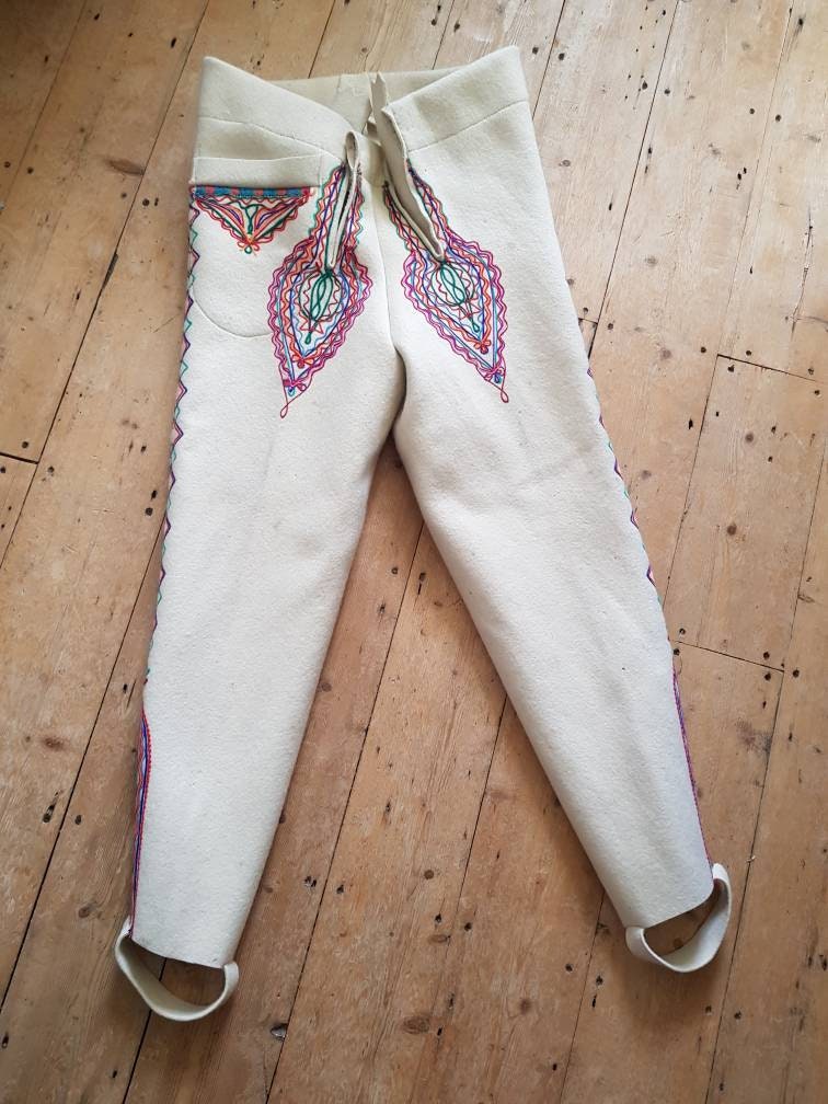 Slovakian wool folk trousers embroidered rainbow colourful Traditional Eastern European
